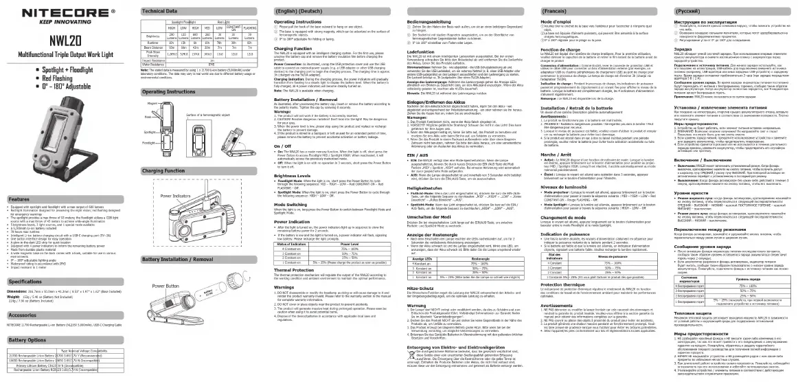 NWL20 - Éclairage Nitecore - Notice d'utilisation et mode d'emploi gratuit