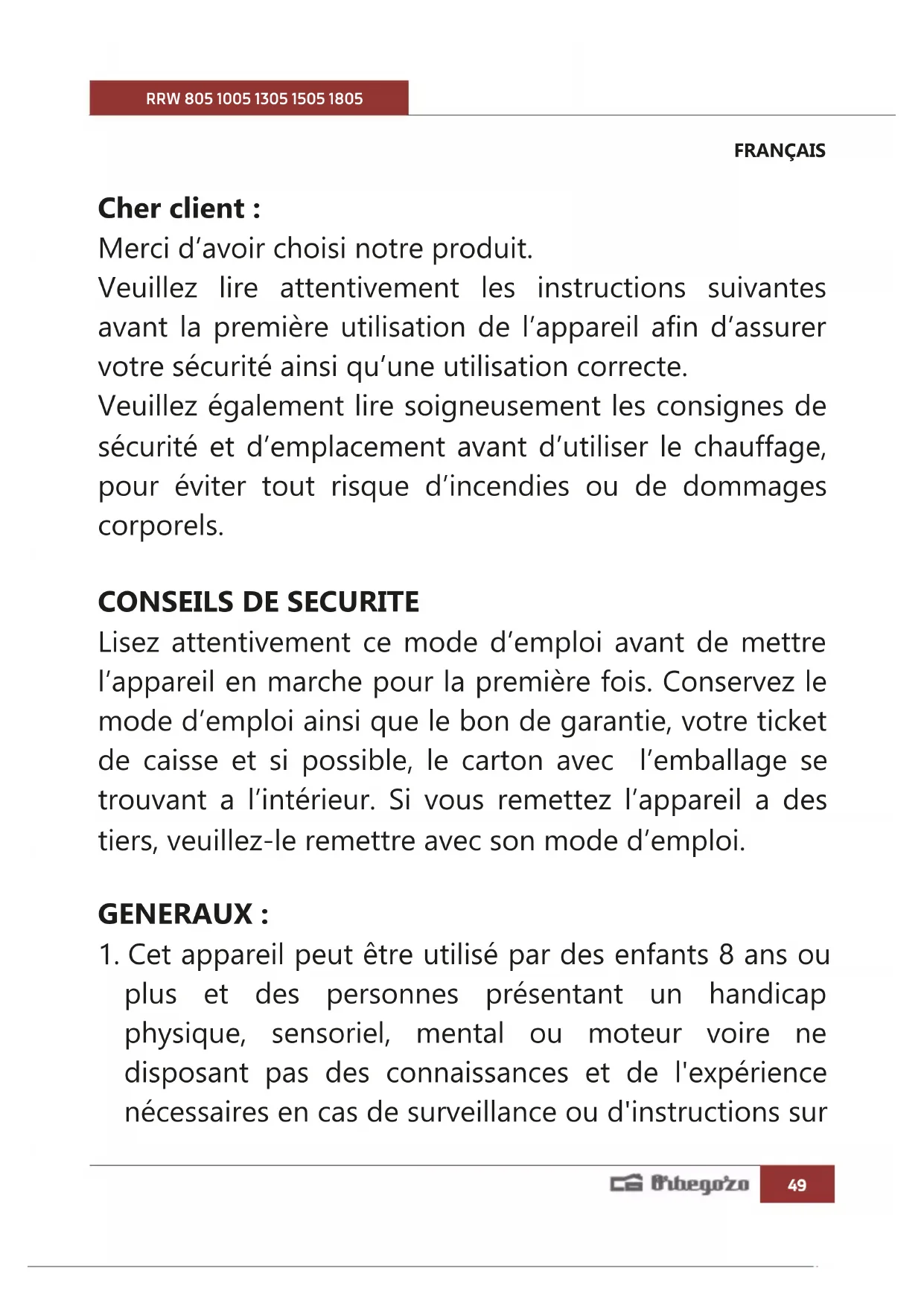 RRW 1005 - Chauffage Orbegozo - Notice d'utilisation et mode d'emploi gratuit