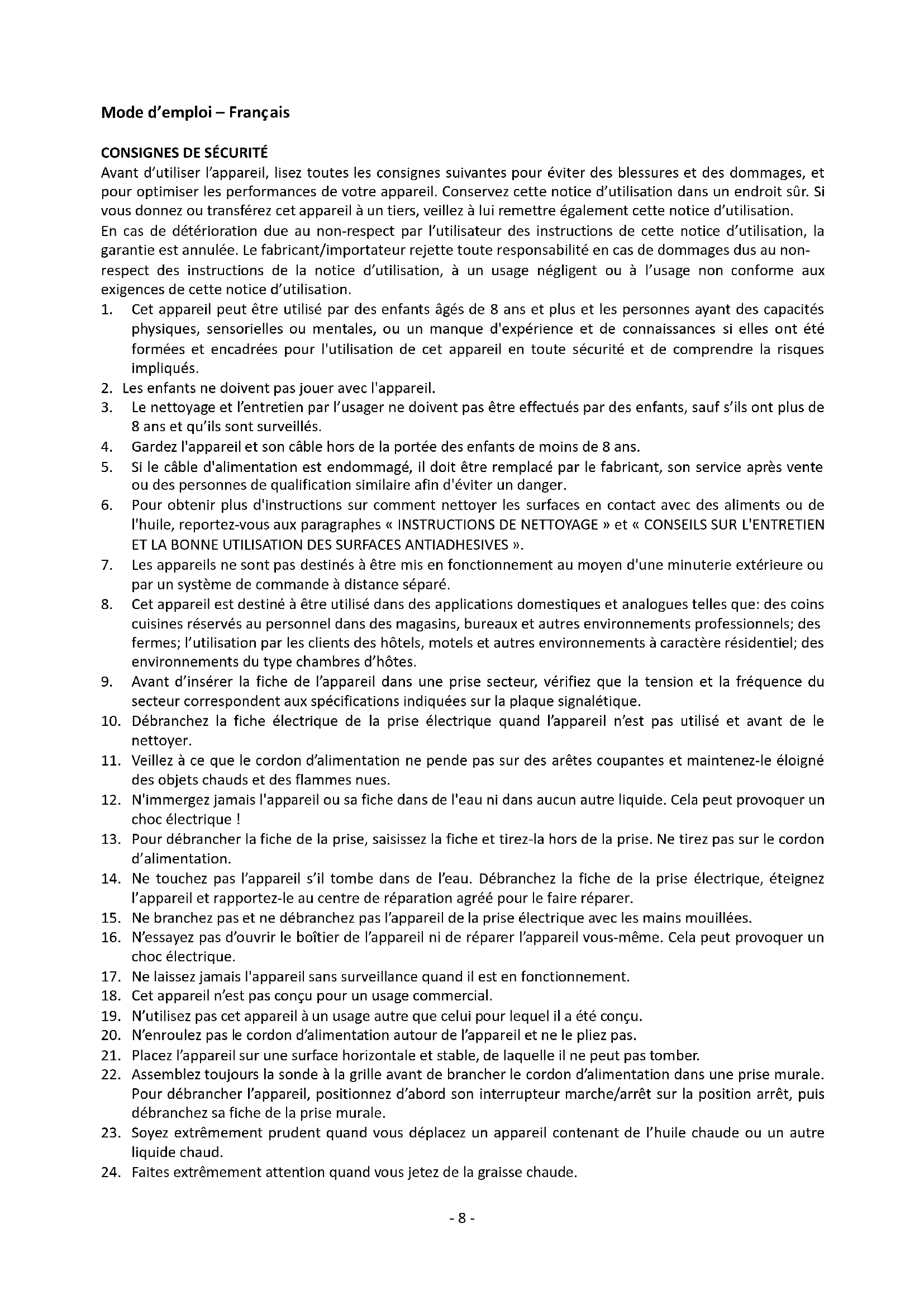 24. Faites extrêmement attention quand vous jetez de la graisse chaude.- 9 -