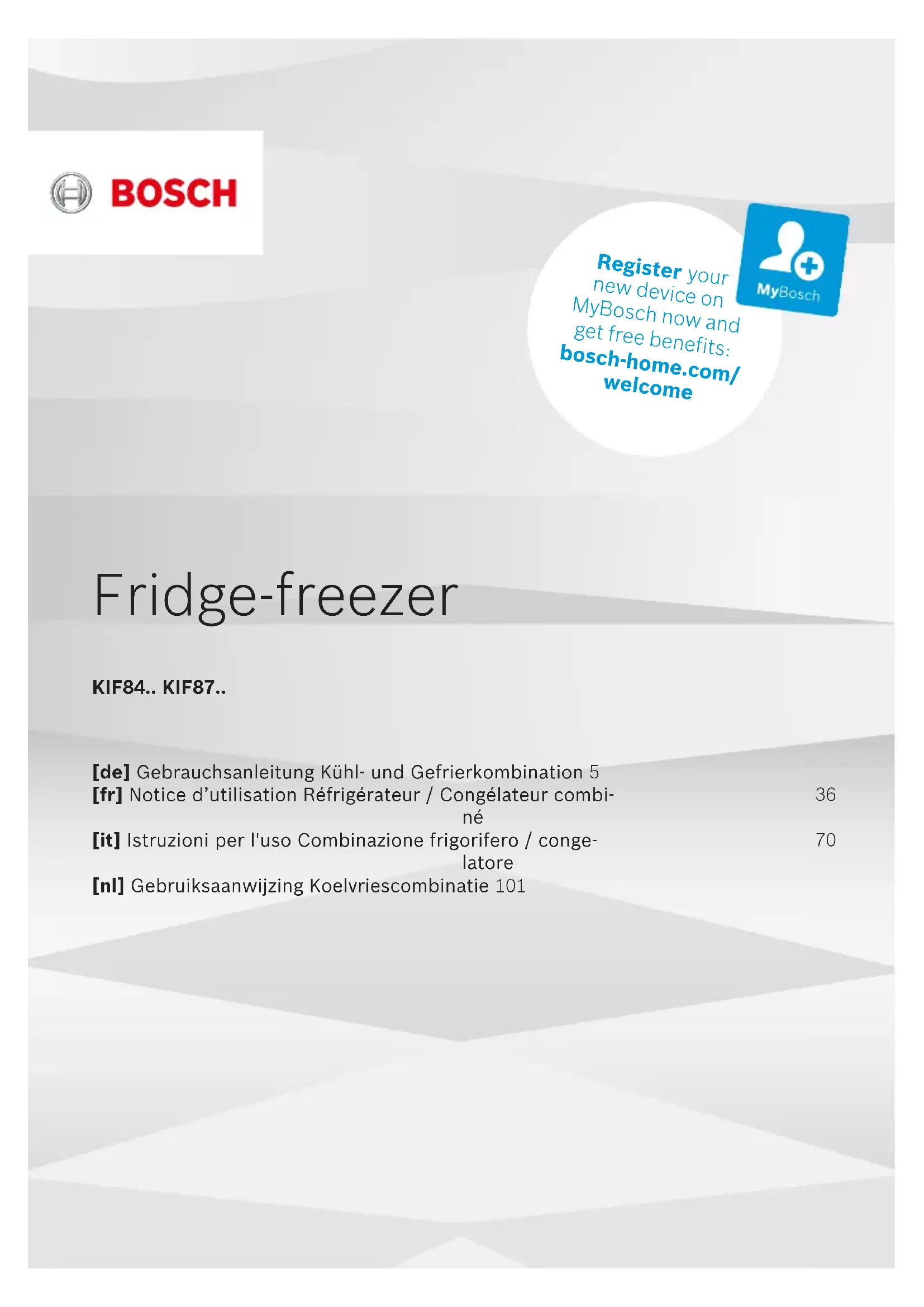 Retrouvez gratuitement la notice de l'appareil KIF87SDD0 BOSCH au format PDF.