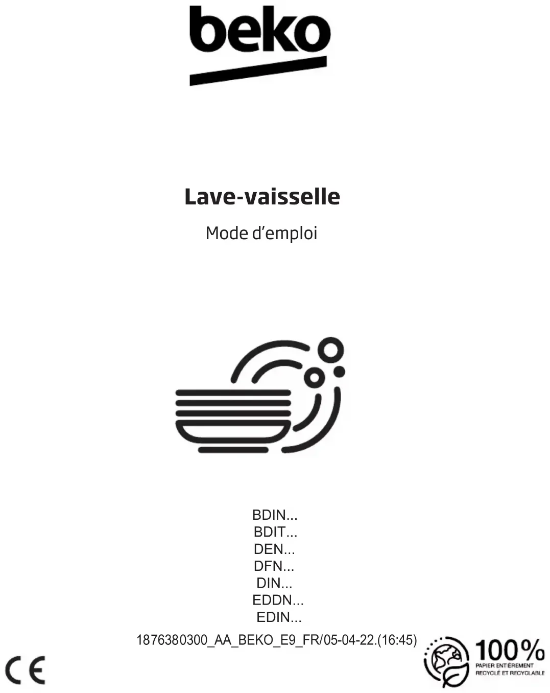 BDIN38647C - Lave-vaisselle BEKO - Notice d'utilisation et mode d'emploi gratuit