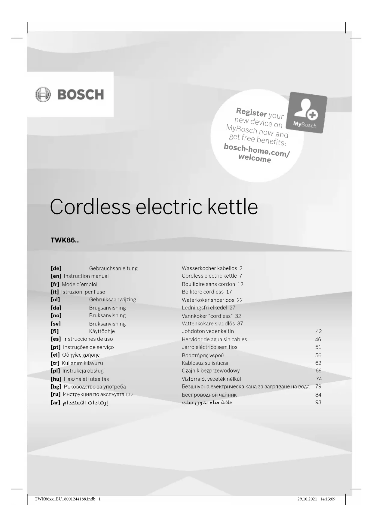 Styline TWK8617P - Bouilloire BOSCH - Notice d'utilisation et mode d'emploi gratuit