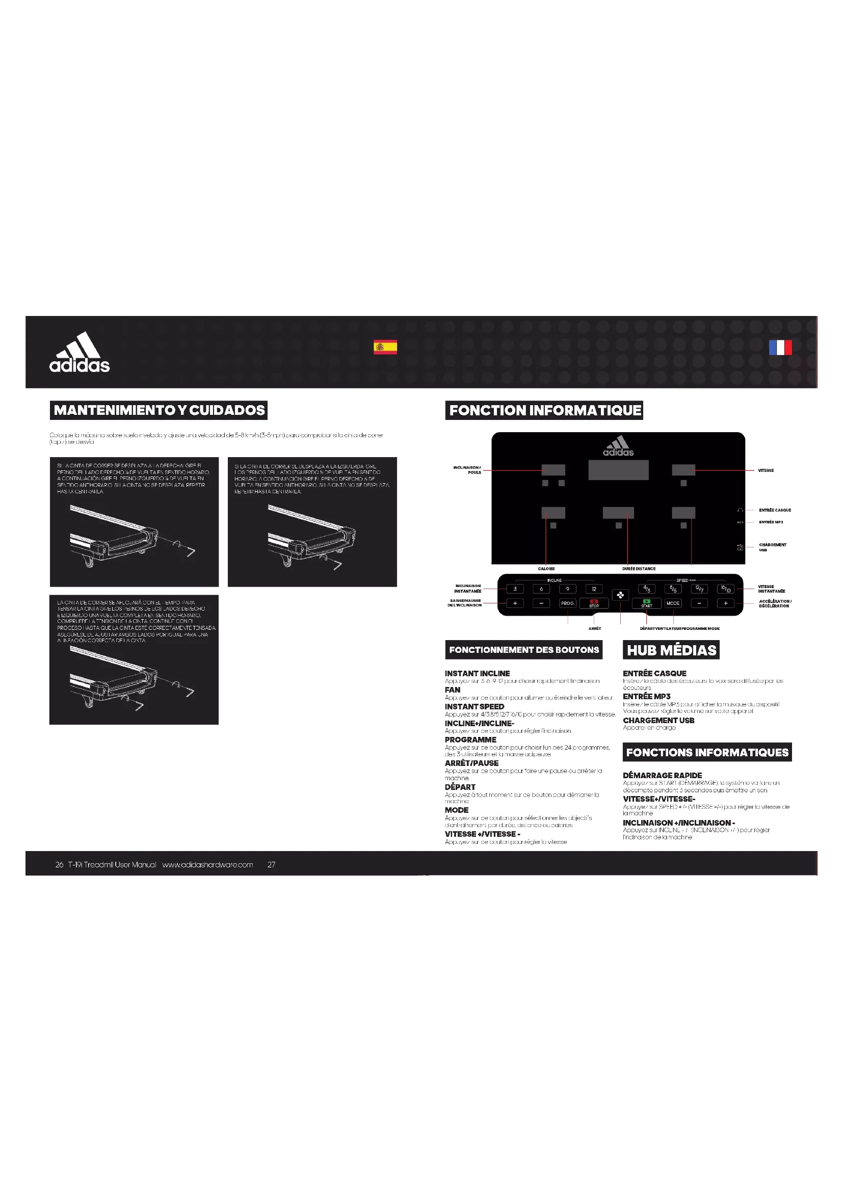 T-19i - Tapis de course ADIDAS - Notice d'utilisation et mode d'emploi gratuit