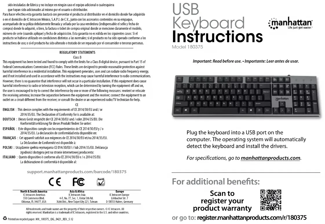 Téléchargez la notice de votre Clavier au format PDF gratuitement ! Retrouvez votre notice 180375 - MANHATTAN et reprennez votre appareil électronique en main. Sur cette page sont publiés tous les documents nécessaires à l'utilisation de votre appareil 180375 de la marque MANHATTAN.