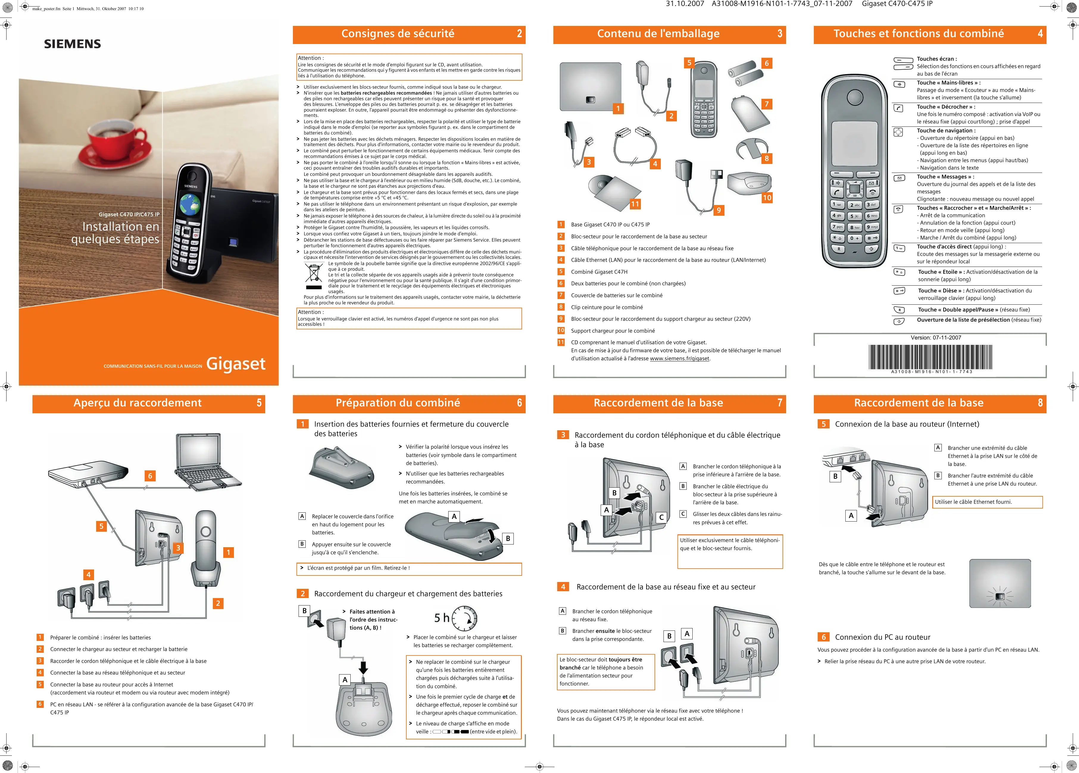 Des collaborateurs Siemens compétents se tiennent à votre disposition pour vous fournir des informations sur nos produits et vous expliquer leur installation. Gigaset C475 IP : utilisation du répondeur Pour être toujours joignable par Internet, le routeur doit être constamment connecté à Internet. Service Clients (Customer Care) Issued by Siemens Home and Office Communucation Devices GmbH & Co. KG, Schlavenhorst 66, D-46395 Bocholt
