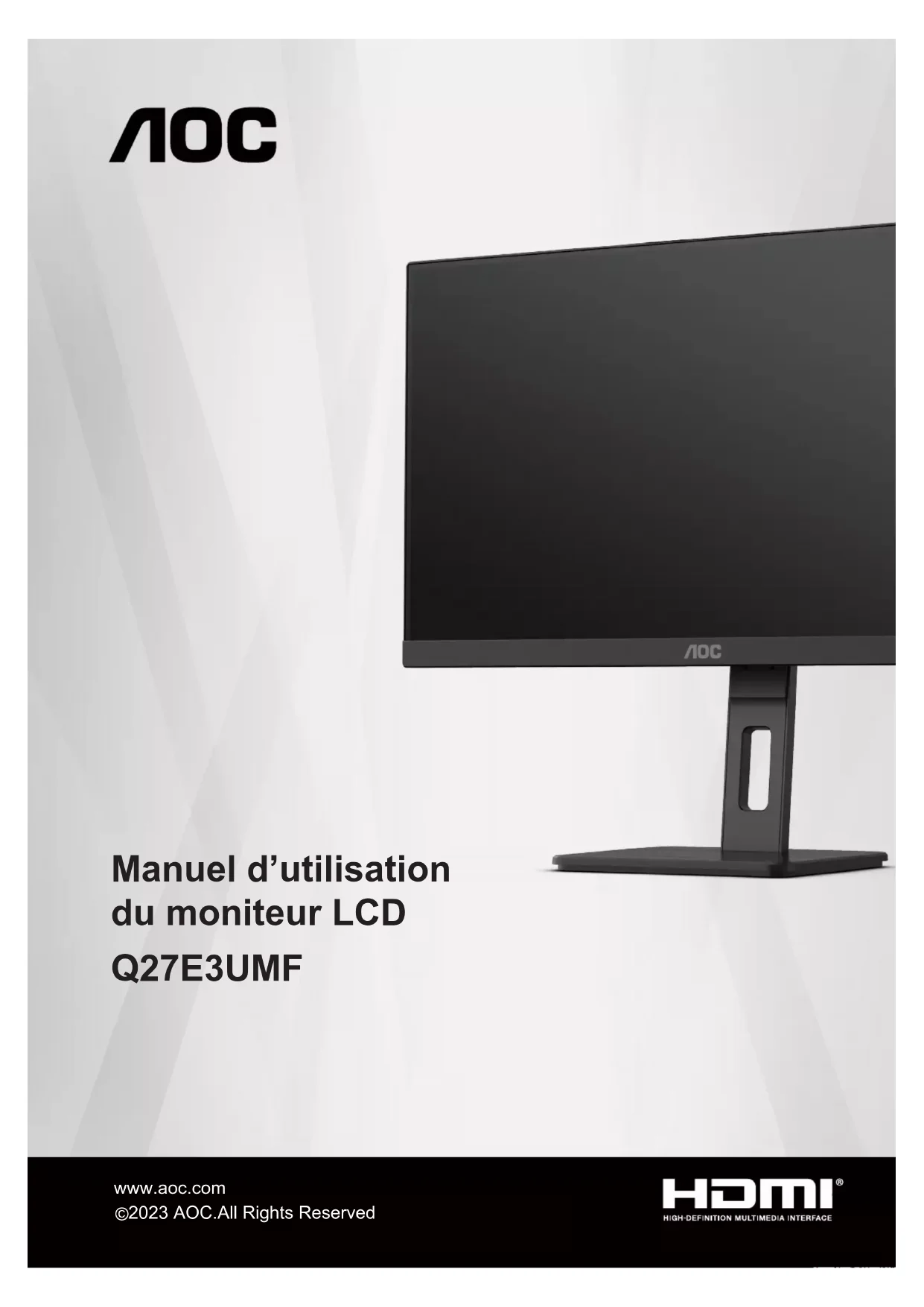 Retrouvez gratuitement la notice de l'appareil Q27E3UMF AOC au format PDF.