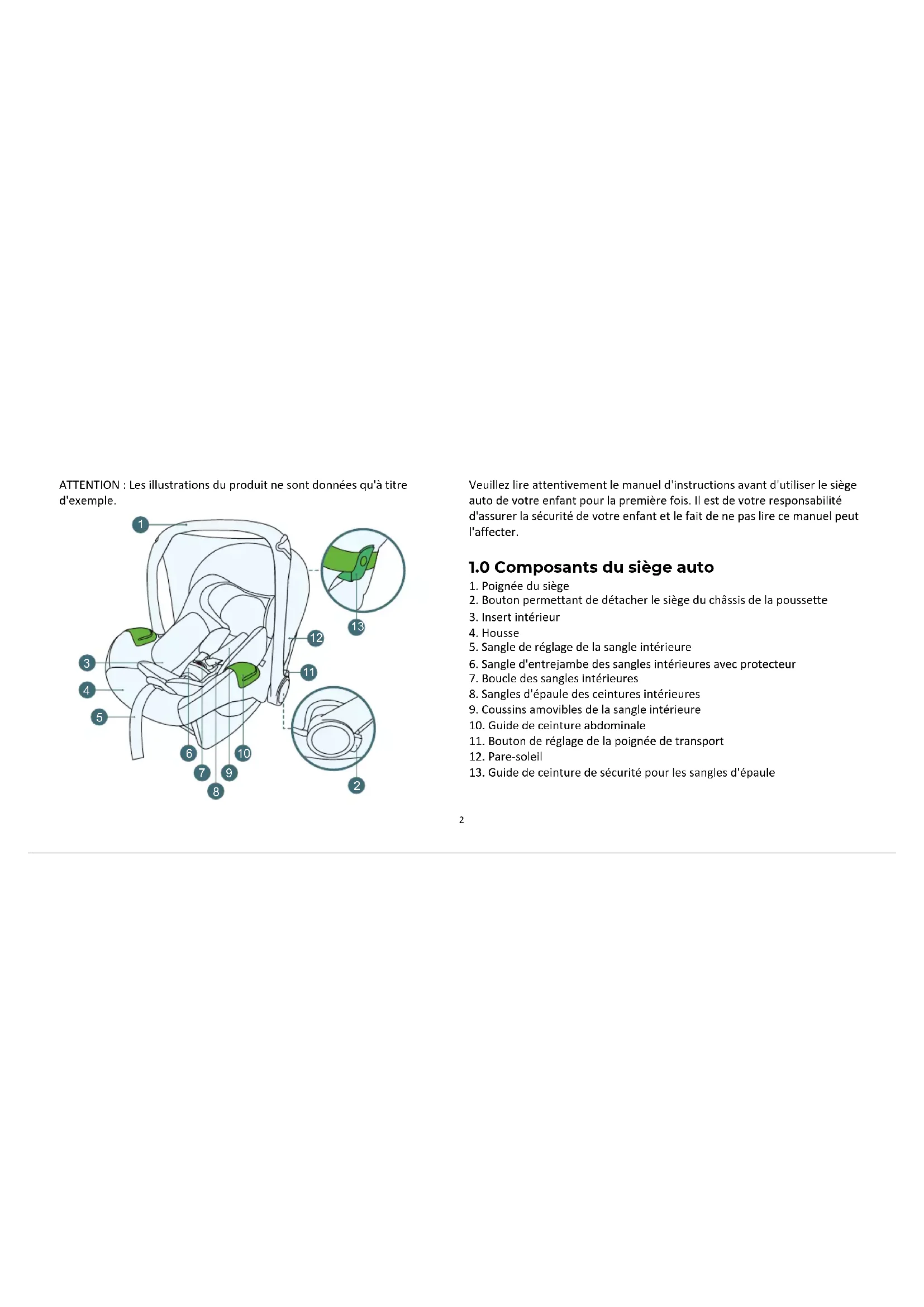 1.0 Composants du siège auto