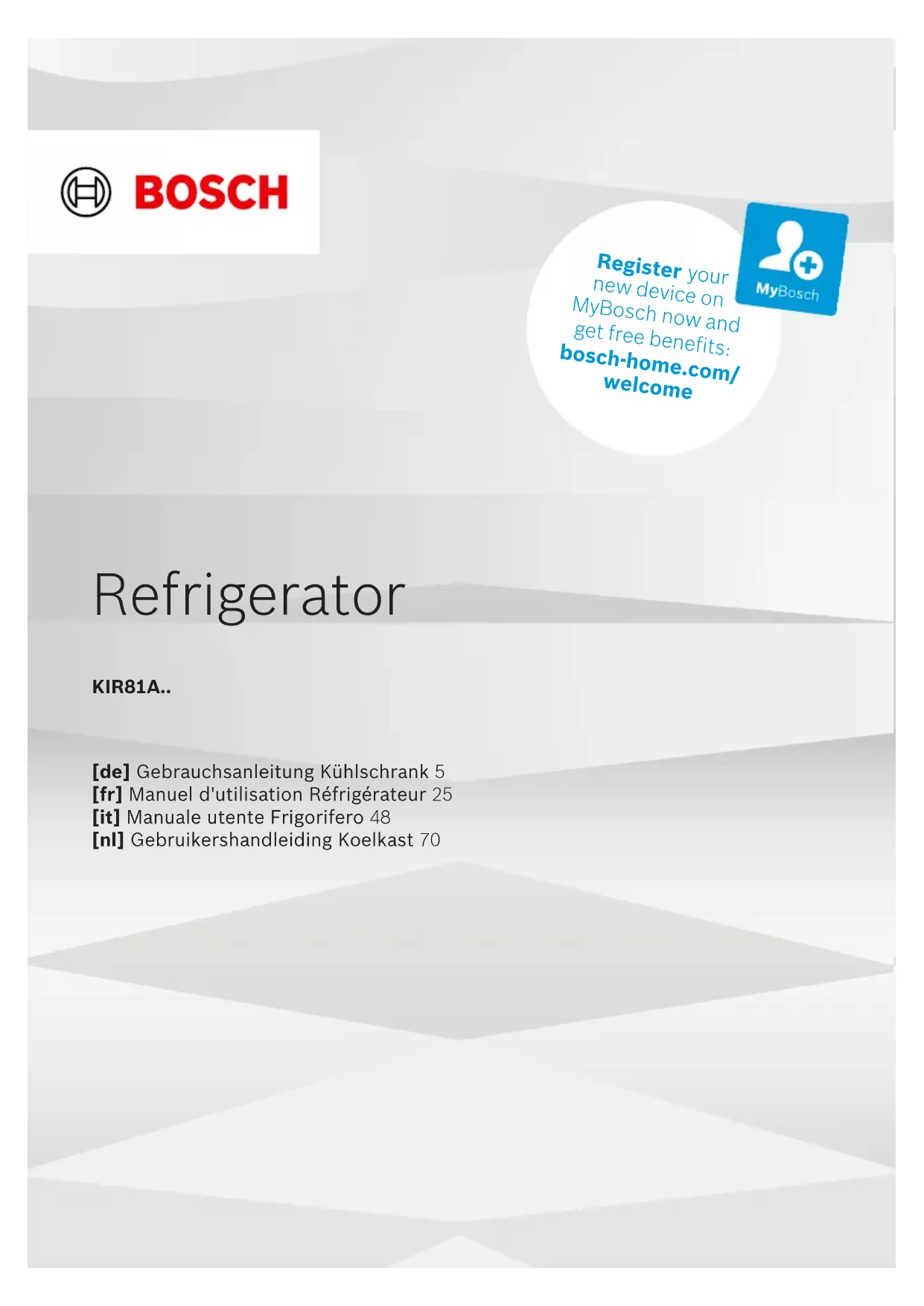 KIR81ADD0 - Réfrigérateur BOSCH - Notice d'utilisation et mode d'emploi gratuit