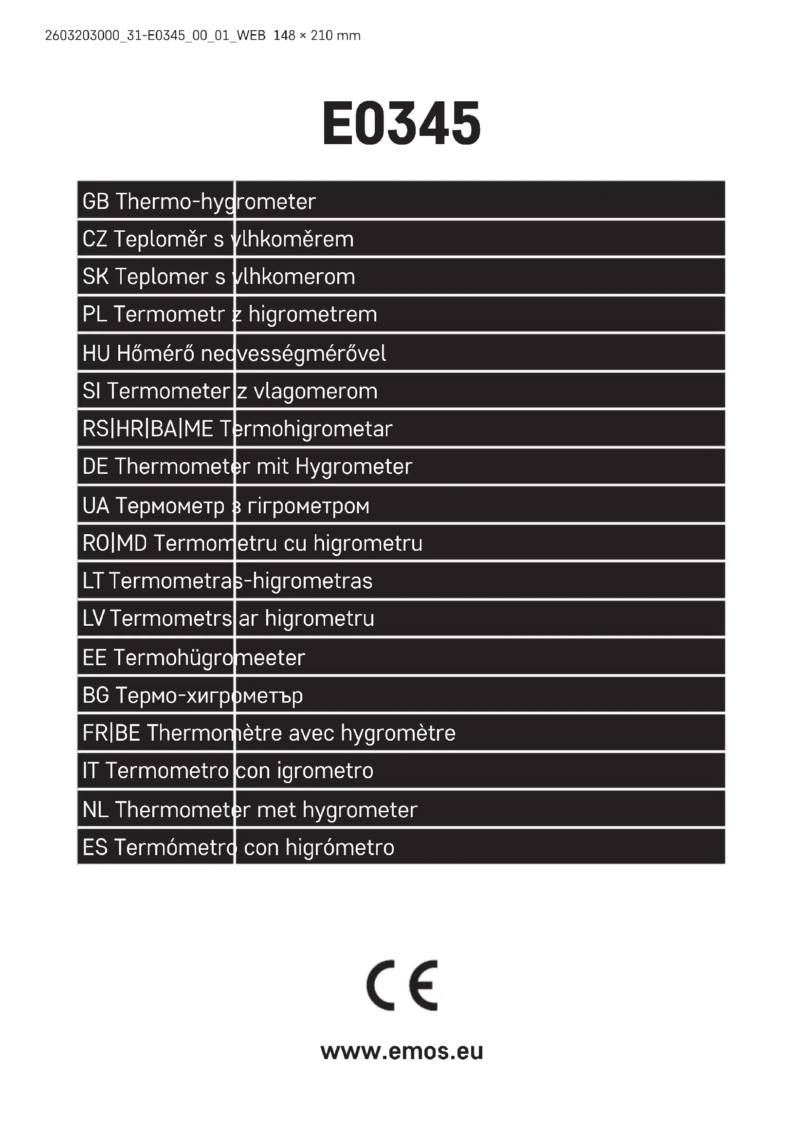 E0345 - Thermomètre Emos - Notice d'utilisation et mode d'emploi gratuit