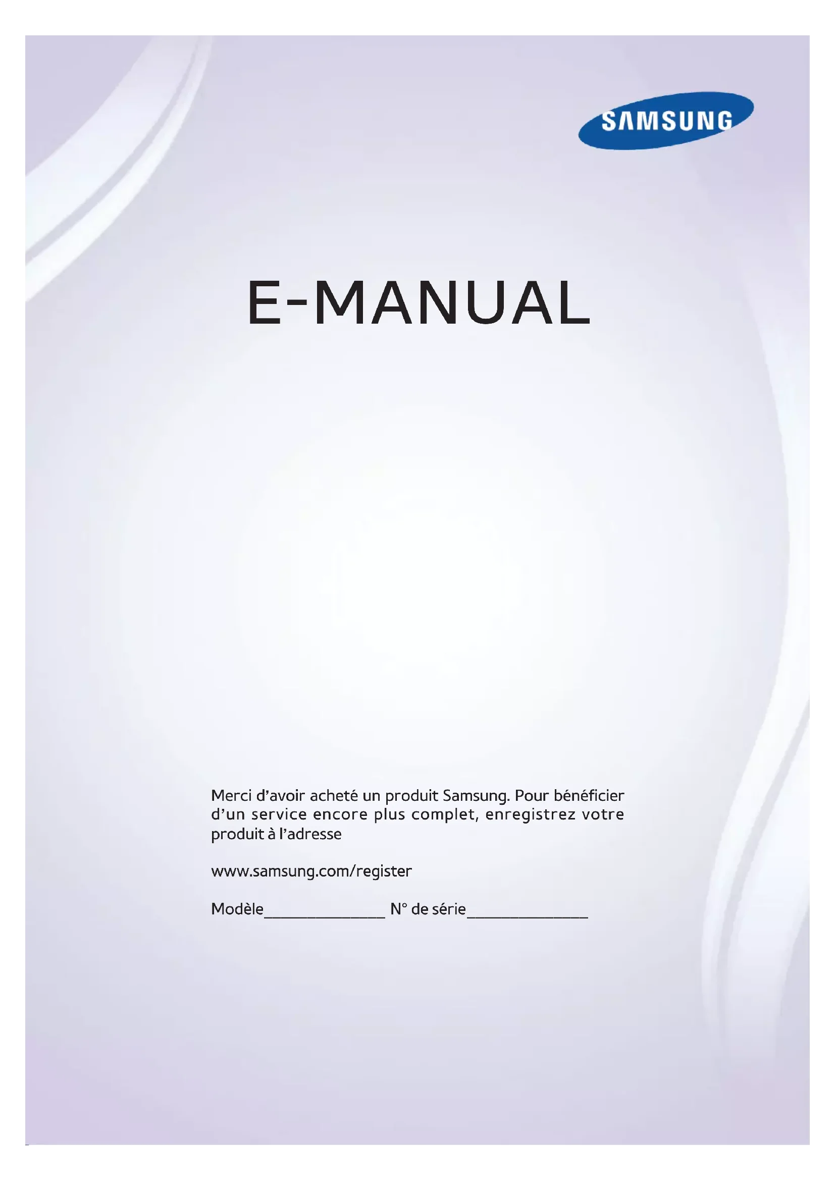E-MANUAL Merci d’avoir acheté un produit Samsung. Pour bénéficier d’un service encore plus complet, enregistrez votre produit à l’adresse www.samsung.com/register Modèle