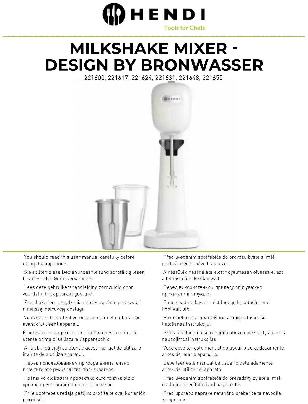 Retrouvez gratuitement la notice de l'appareil 221389 Hendi au format PDF.