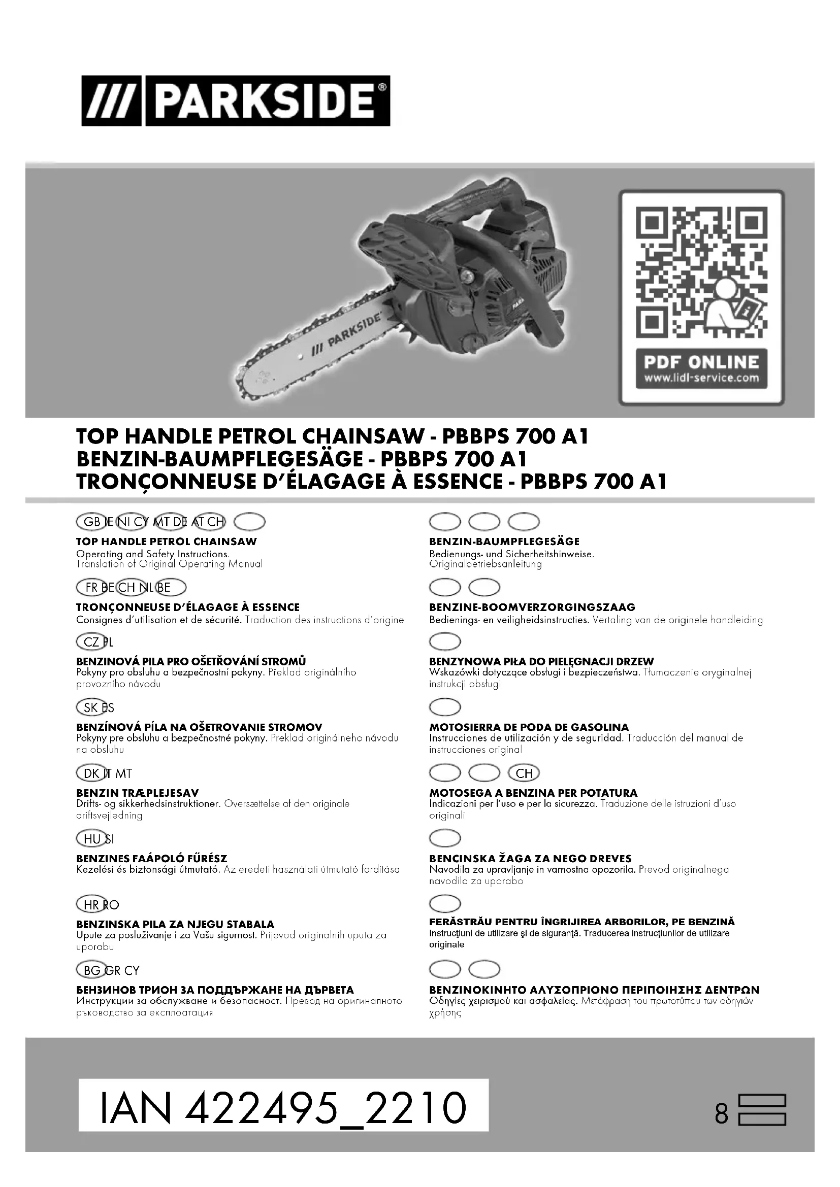 (0,00 €/Min.) Email du service (FR): service.FR@scheppach.com Adresse du service (FR): Scheppach France Strassburg 2, Impasse Jean Millot FR - 6700 Strasbourg À l’adresse www.lidl-service.com, vous pouvez télécharger ce manuel et bien d’autres, les vidéos de produit et les logiciels d’installation. Le QR-Code vous permet d’accéder directement à la page de service Lidl (www.lidl-service.com) et d’ouvrir votre notice d’utilisation à l’aide du numéro d’article (IAN) 422495_2210. Service-hotline (BE):