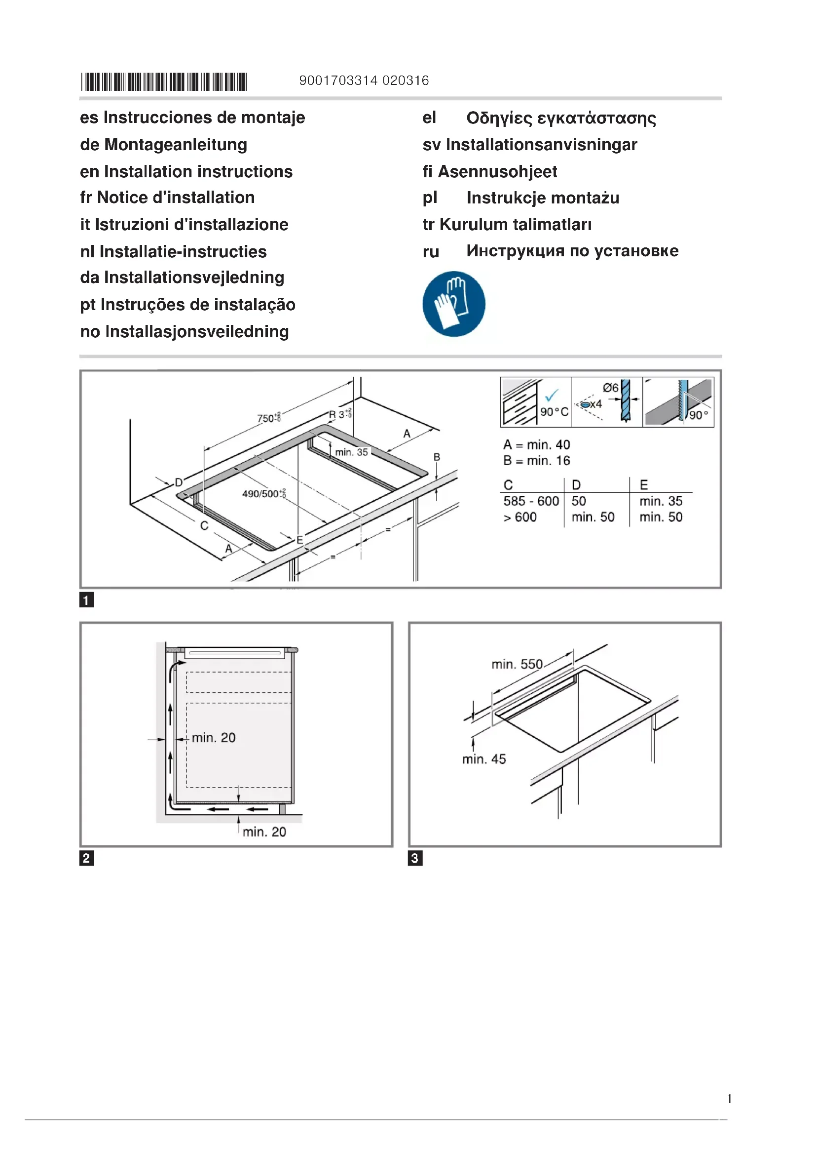 de montage. ‒ Veiller à ce que l'angle du chant de la découpe par rapport au plan de travail soit de 90°.