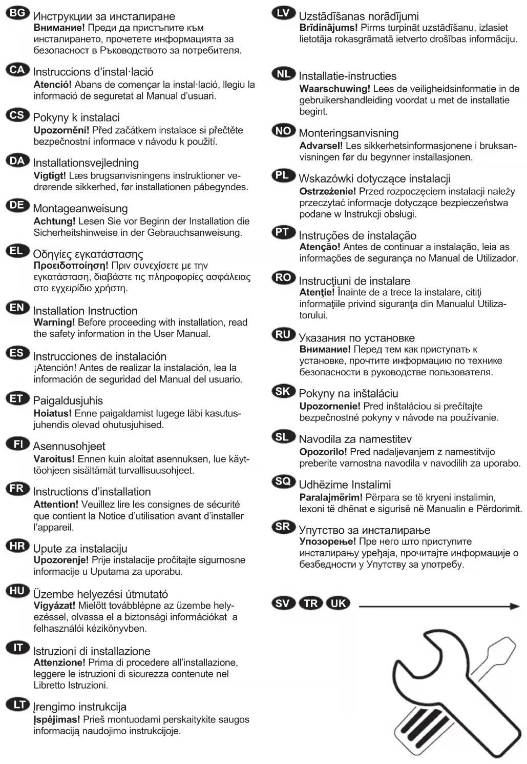 Instructions d’installation Attention! Veuillez lire les consignes de sécurité que contient la Notice d’utilisation avant d’installer l’appareil.