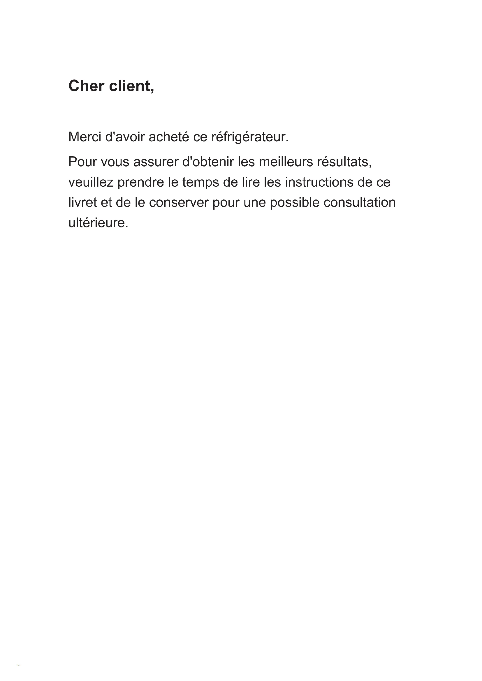 REFRIGERATEUR Notice d'Utilisation GRTF11A GRTF11IXCher client, Merci d'avoir acheté ce réfrigérateur. Pour vous assurer d'obtenir les meilleurs résultats, veuillez prendre le temps de lire les instructions de ce livret et de le conserver pour une possible consultation ultérieure.-Enlevez les portes. -Laissez les étagères en place afin que les enfants ne puissent pas facilement grimper à l'intérieur.
