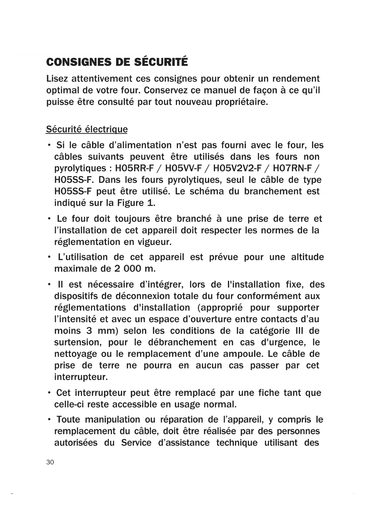 Lisez attentivement ces consignes pour obtenir un rendement optimal de votre four. Conservez ce manuel de façon à ce qu’il puisse être consulté par tout nouveau propriétaire. Sécurité électrique
