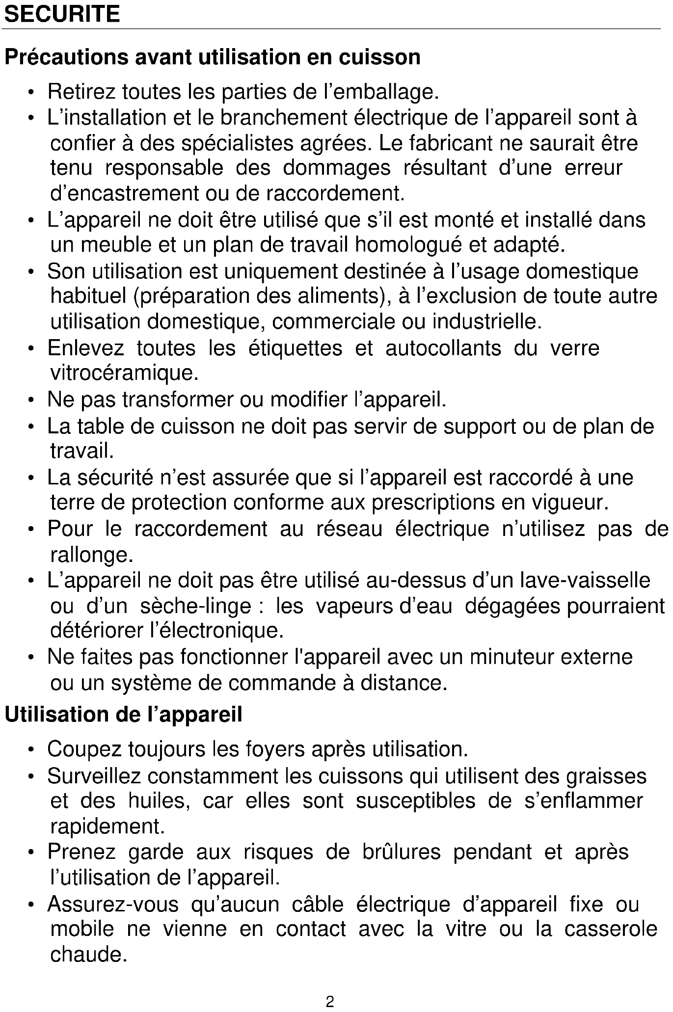 - La table de cuisson ne doit pas servir de support ou de plan de travail.