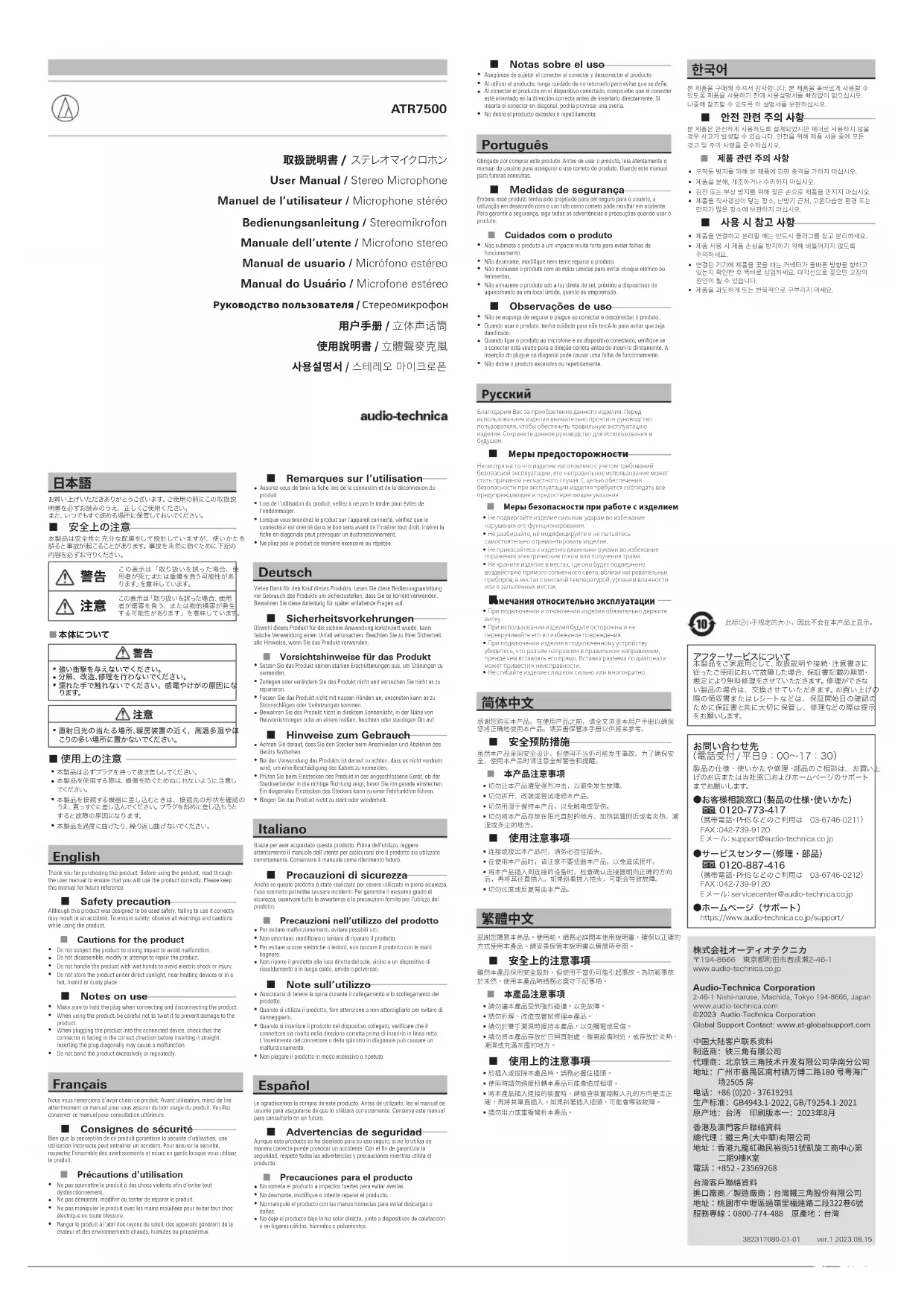 Retrouvez gratuitement la notice de l'appareil ATR7500 AUDIO TECHNICA au format PDF.