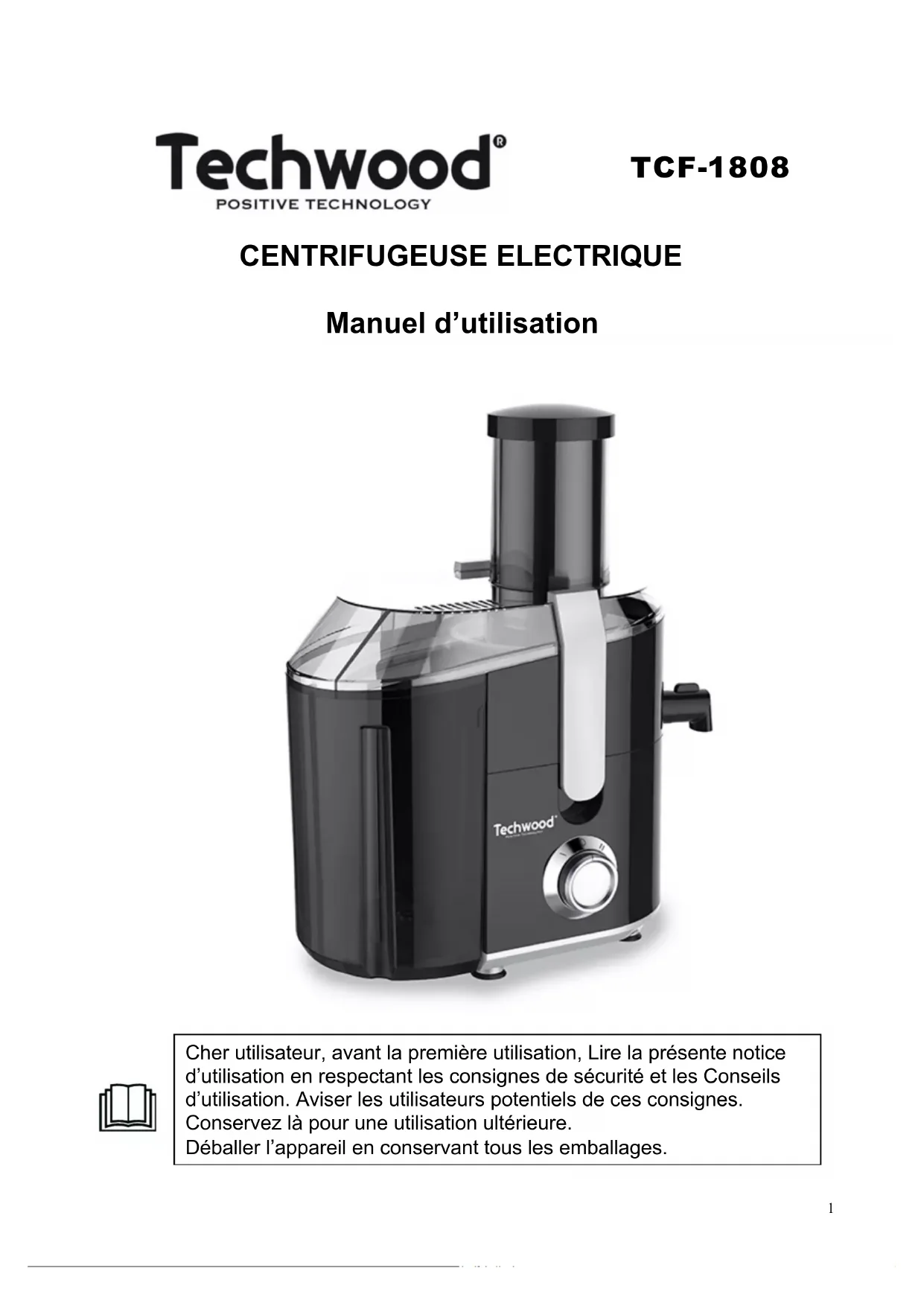 Retrouvez gratuitement la notice de l'appareil TCF-1808 TECHWOOD au format PDF.