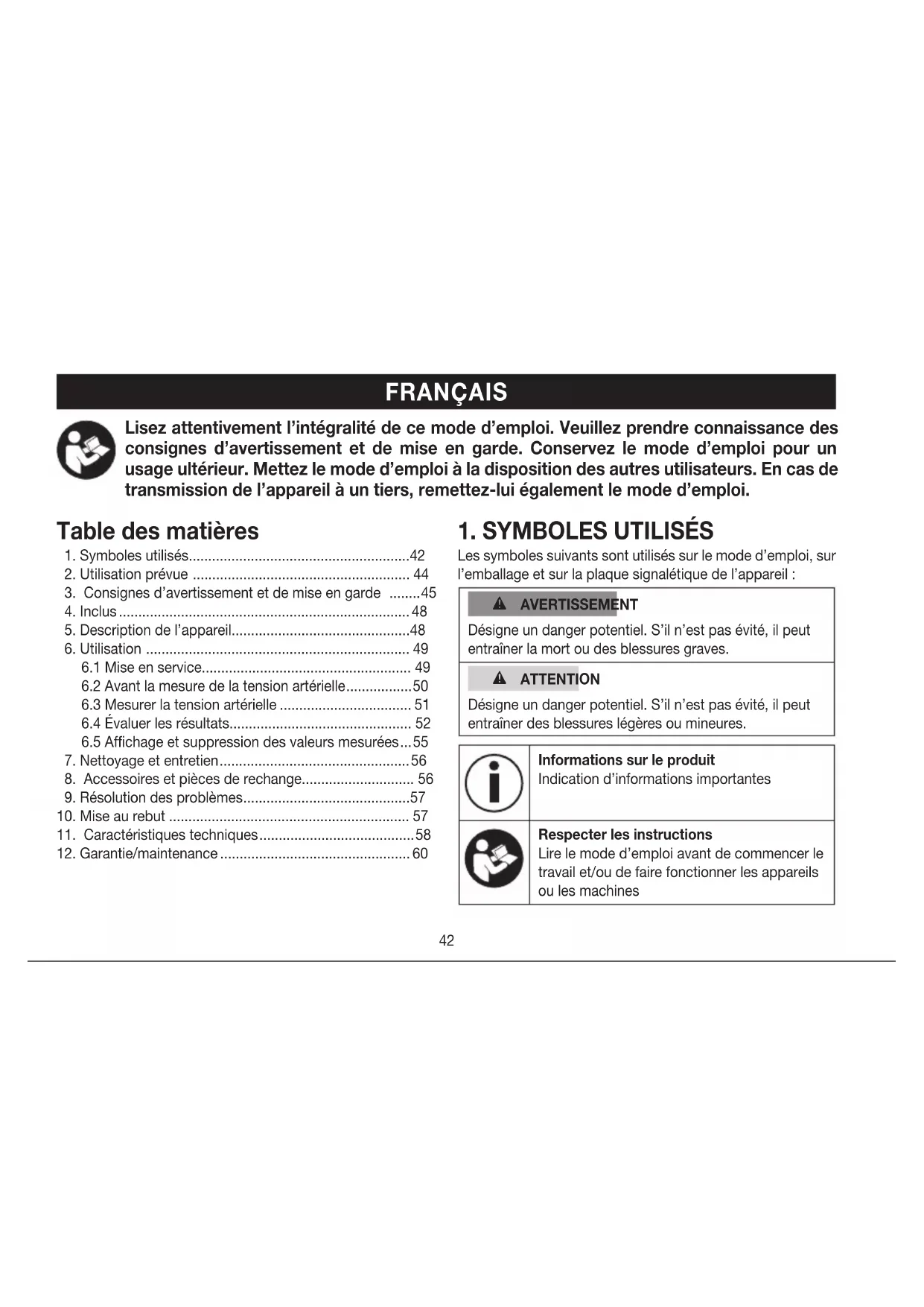 Tensiomètre au bras Mode d‘emploi ....................42