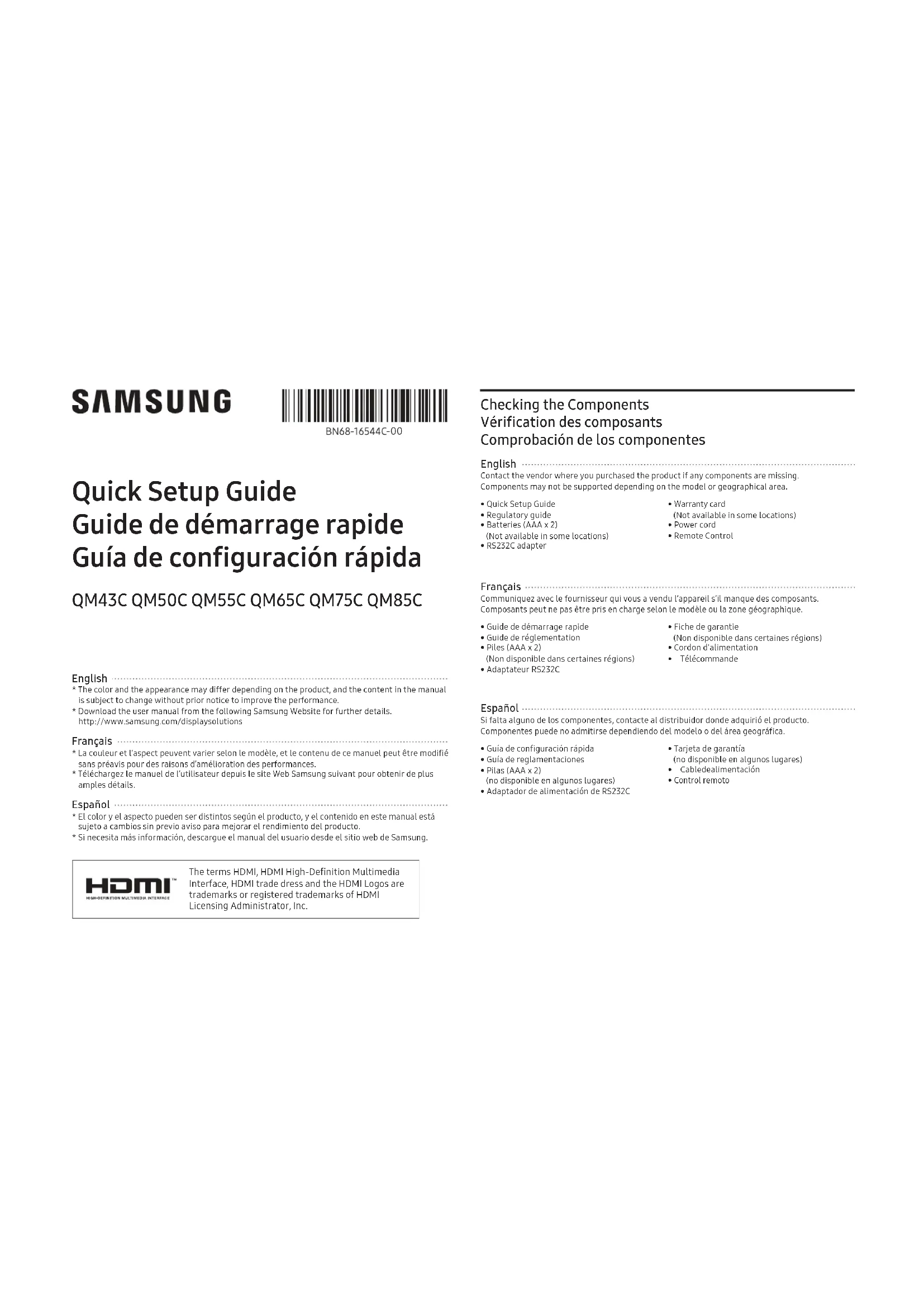 QM85C - Téléviseur SAMSUNG - Notice d'utilisation et mode d'emploi gratuit