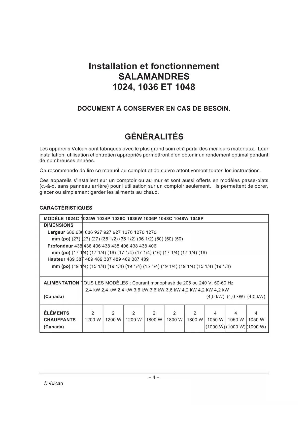 Retrouvez gratuitement la notice de l'appareil 1048W Vulcan au format PDF.