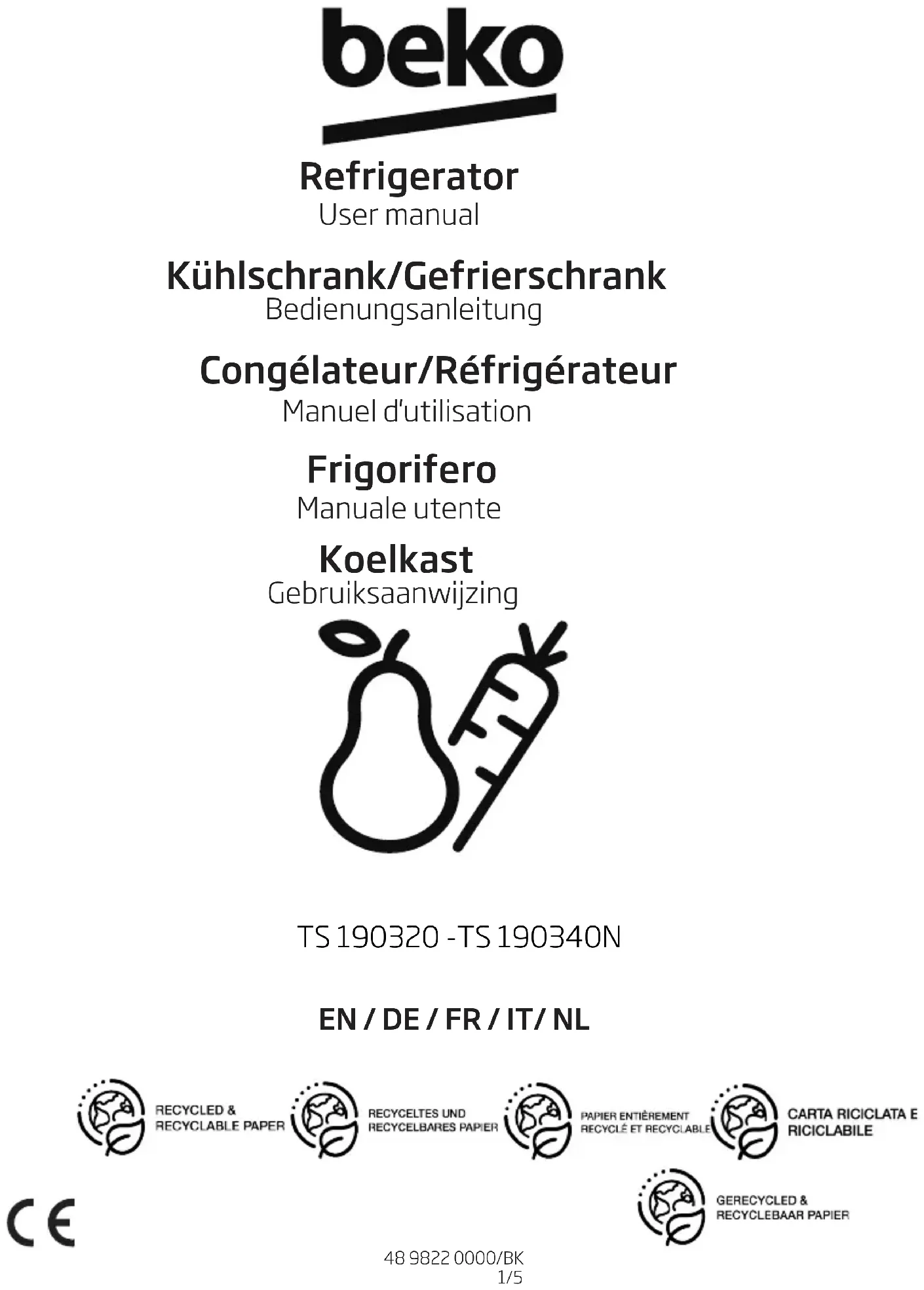 TS190340N - Réfrigérateur BEKO - Notice d'utilisation et mode d'emploi gratuit