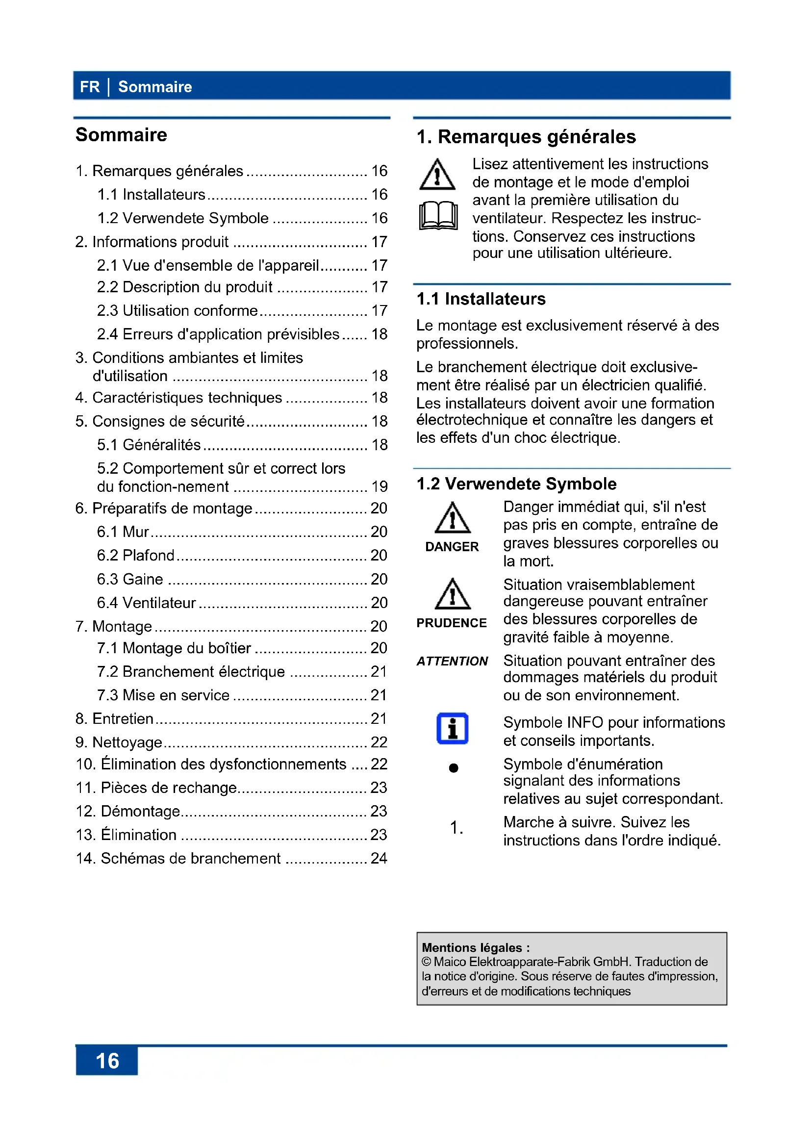 Marche à suivre. Suivez les instructions dans l'ordre indiqué. Mentions légales : © Maico Elektroapparate-Fabrik GmbH. Traduction de la notice d'origine. Sous réserve de fautes d'impression, d'erreurs et de modifications techniques2. Informations produit │ FR
