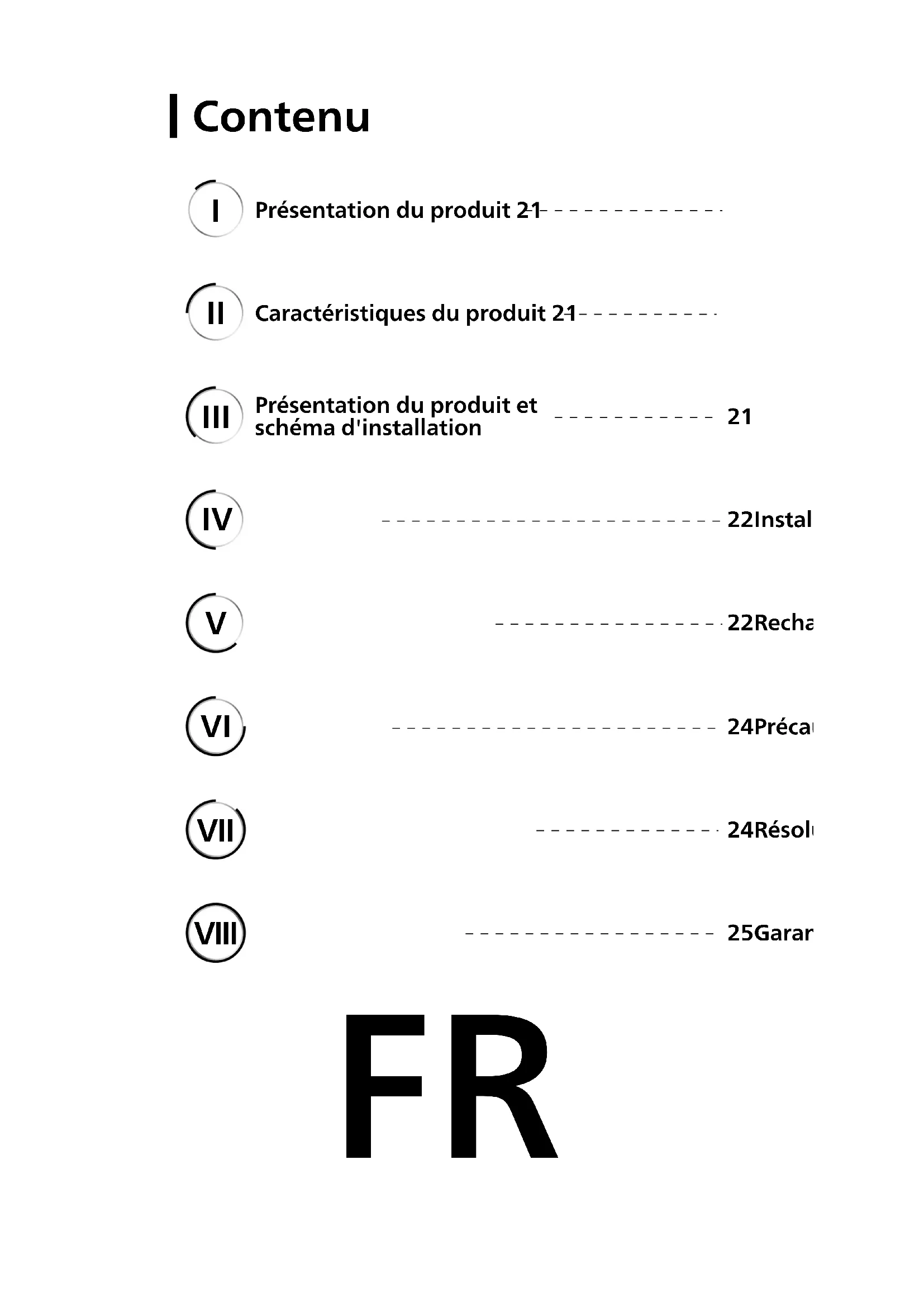 22Installation 22Recharge d'antitartre 24Précautions 24Résolution de problèmes 25Garantie et service