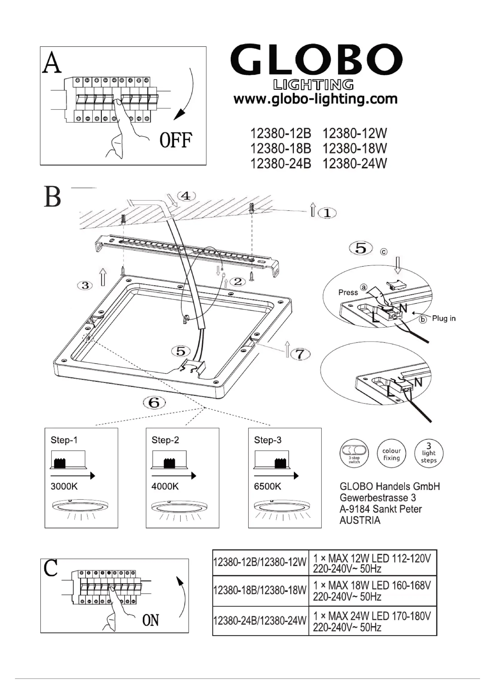 Retrouvez gratuitement la notice de l'appareil 12380-12W Globo au format PDF.