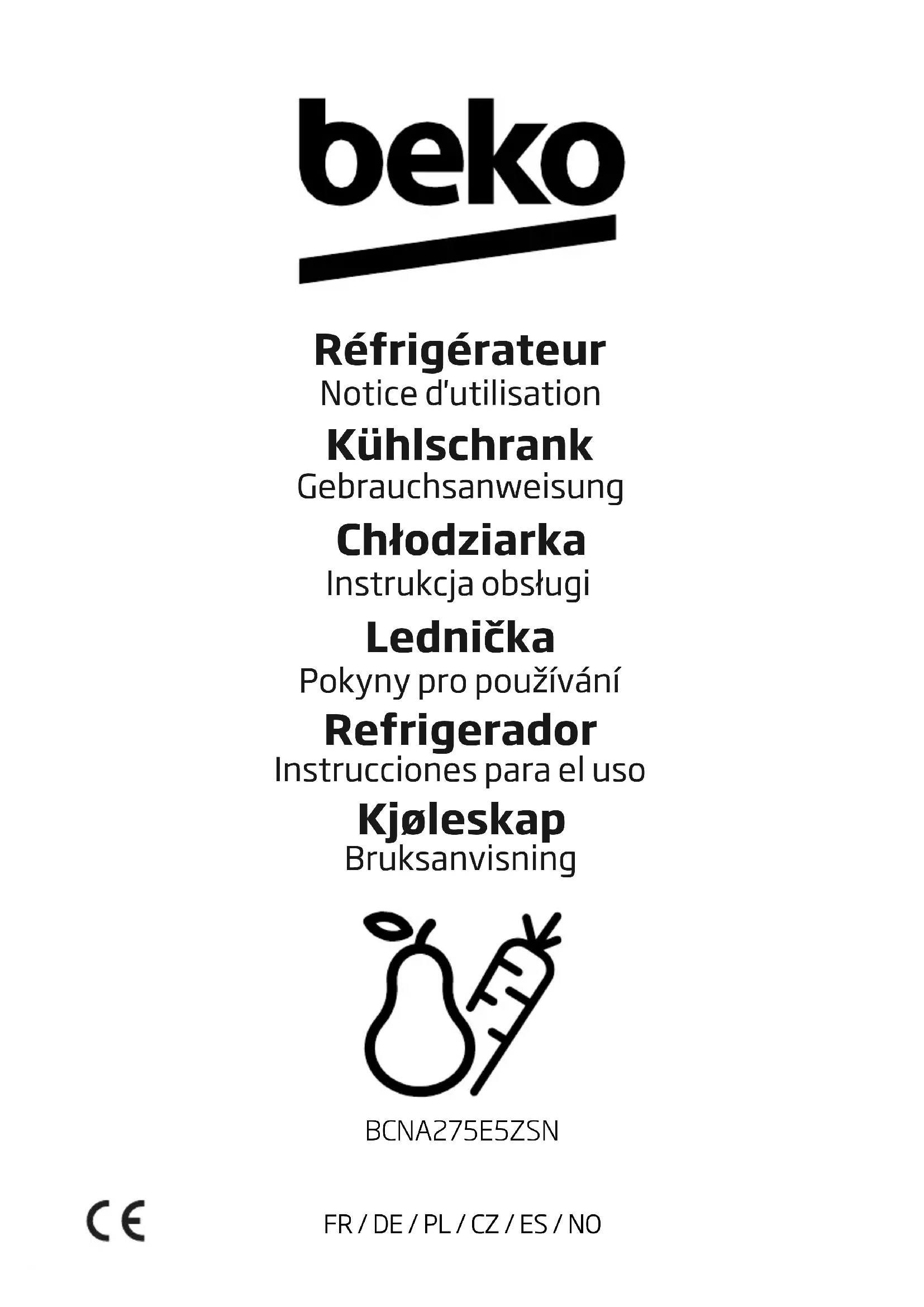 BCNA275E5ZSN - Réfrigérateur BEKO - Notice d'utilisation et mode d'emploi gratuit