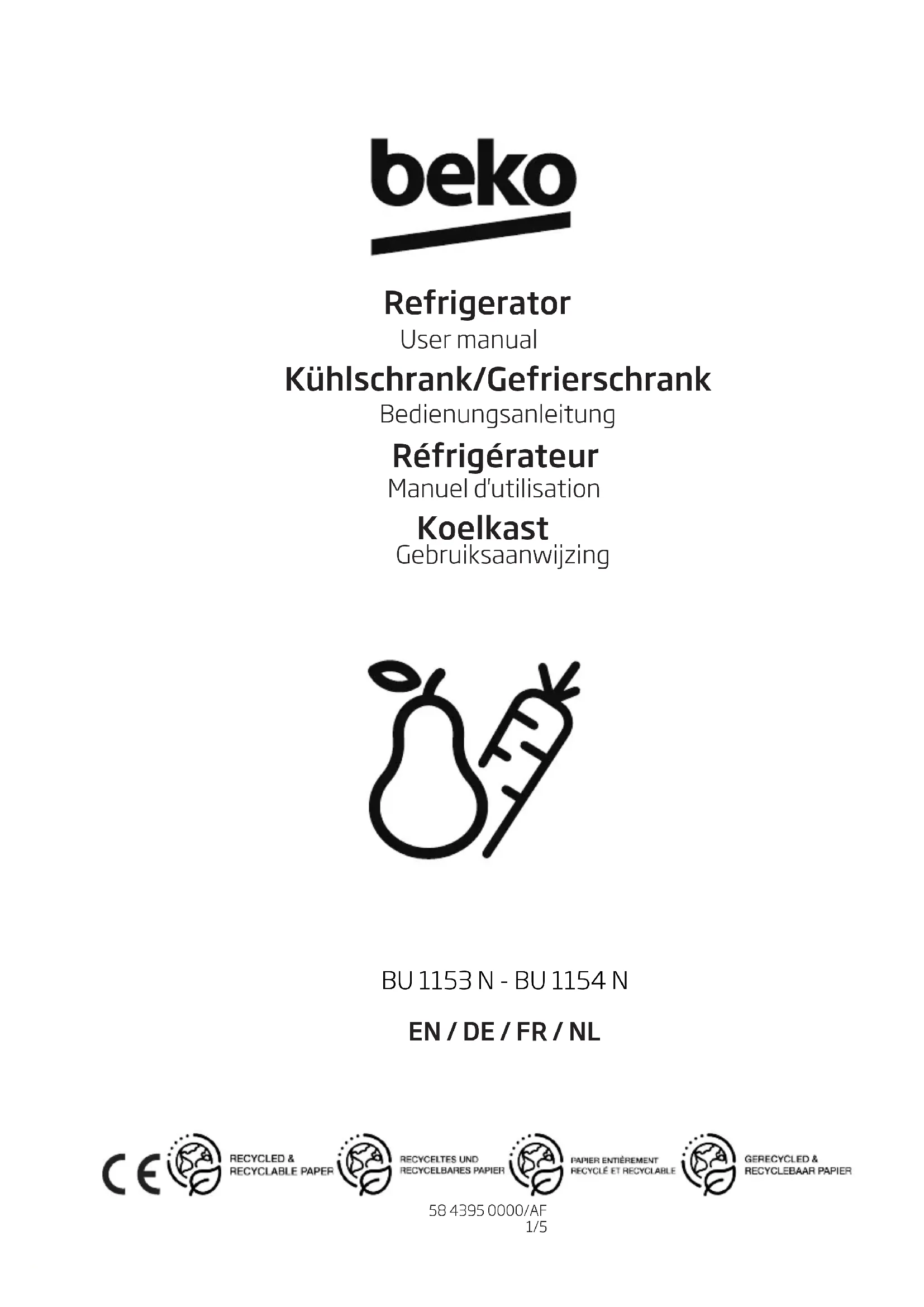 BU1154N - Réfrigérateur BEKO - Notice d'utilisation et mode d'emploi gratuit