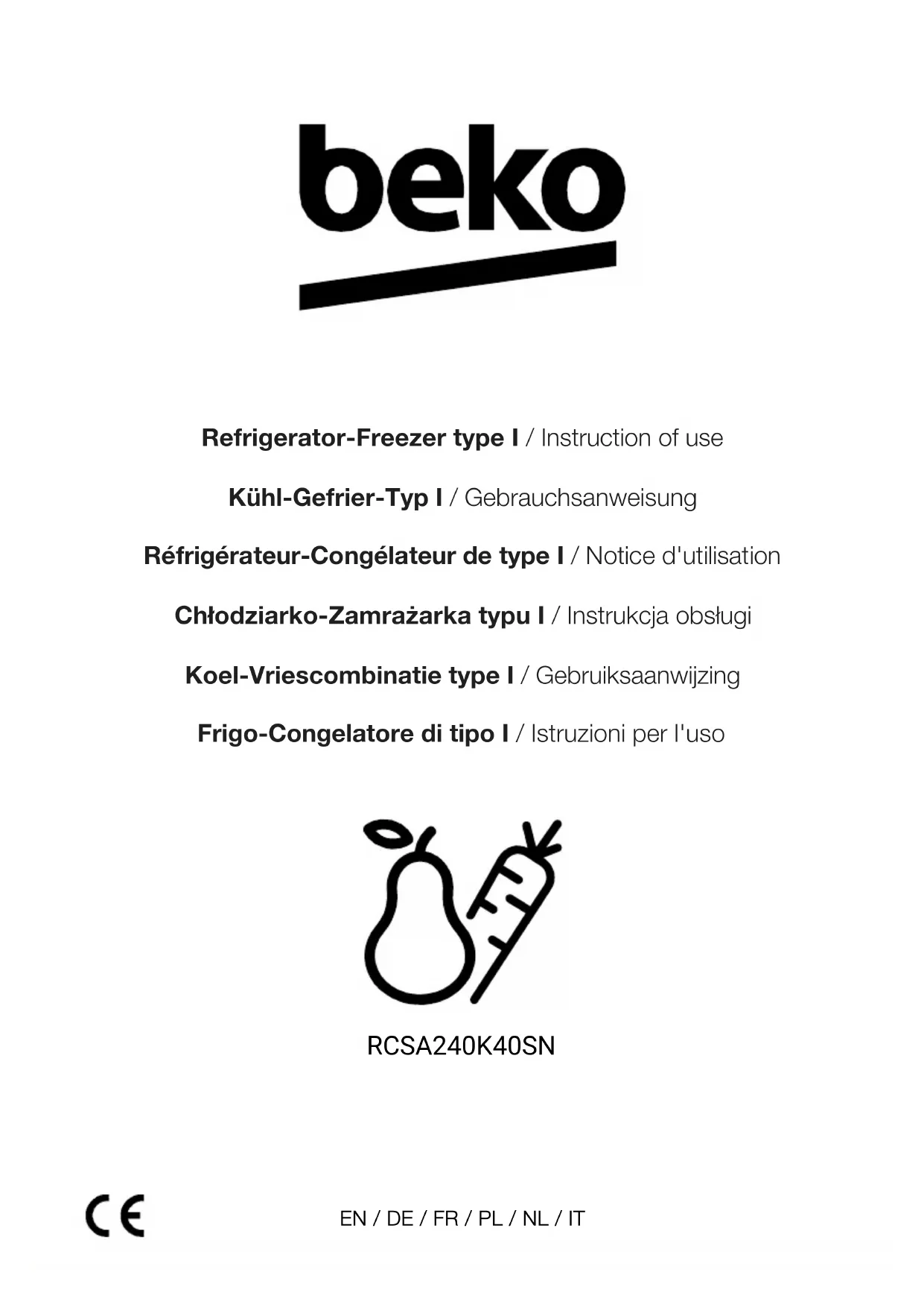 RCSA240K40SN - Réfrigérateur BEKO - Notice d'utilisation et mode d'emploi gratuit