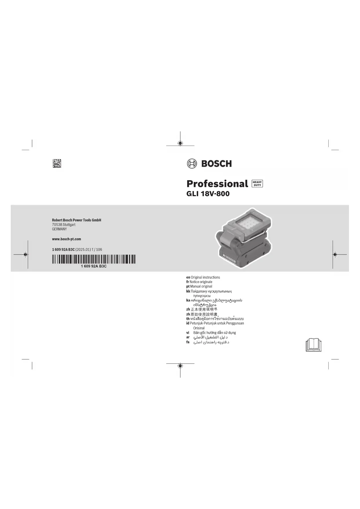 GLI 18V-800 Professional - Lampe BOSCH - Notice d'utilisation et mode d'emploi gratuit