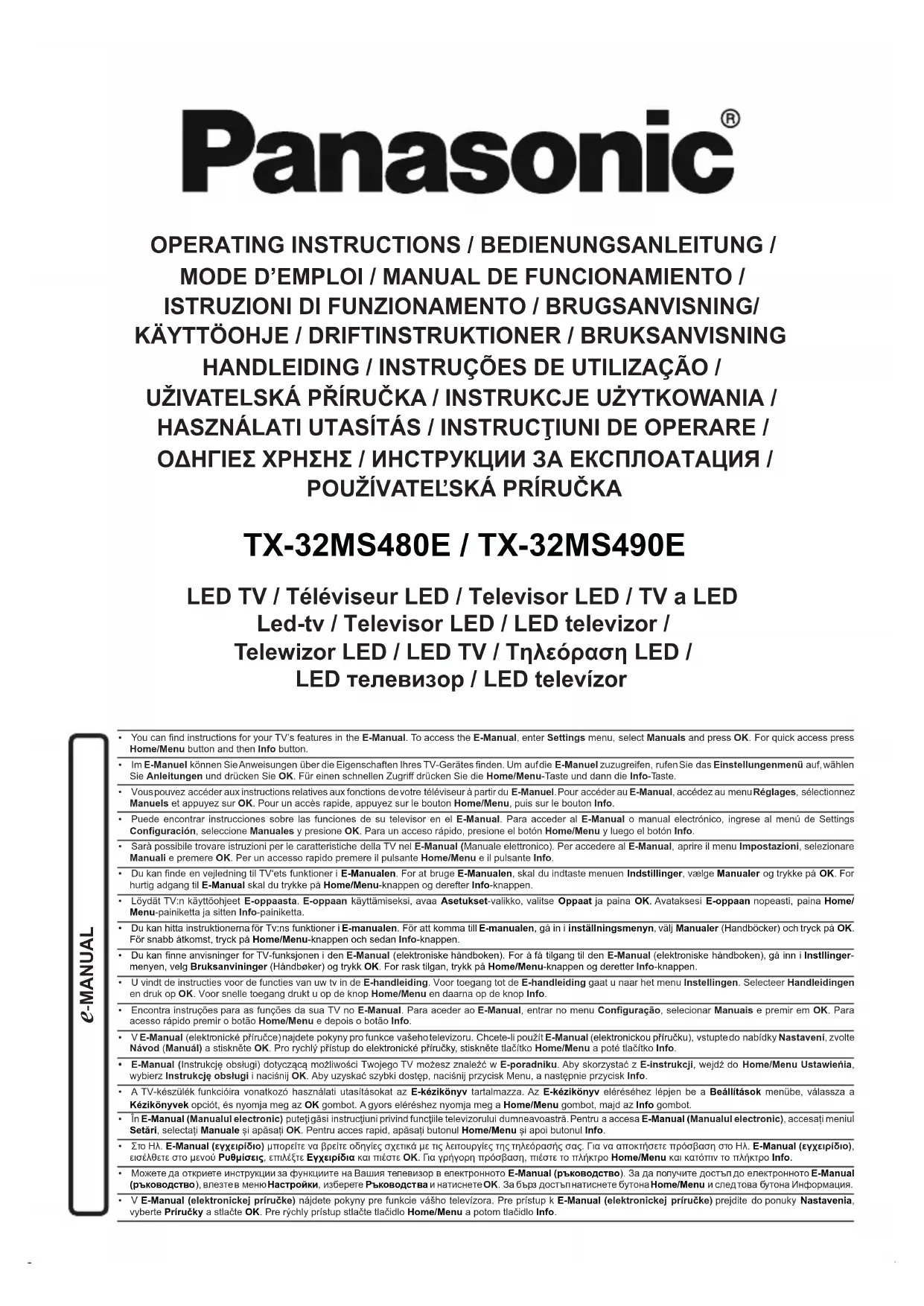 Retrouvez gratuitement la notice de l'appareil TX-32MS480E PANASONIC au format PDF.