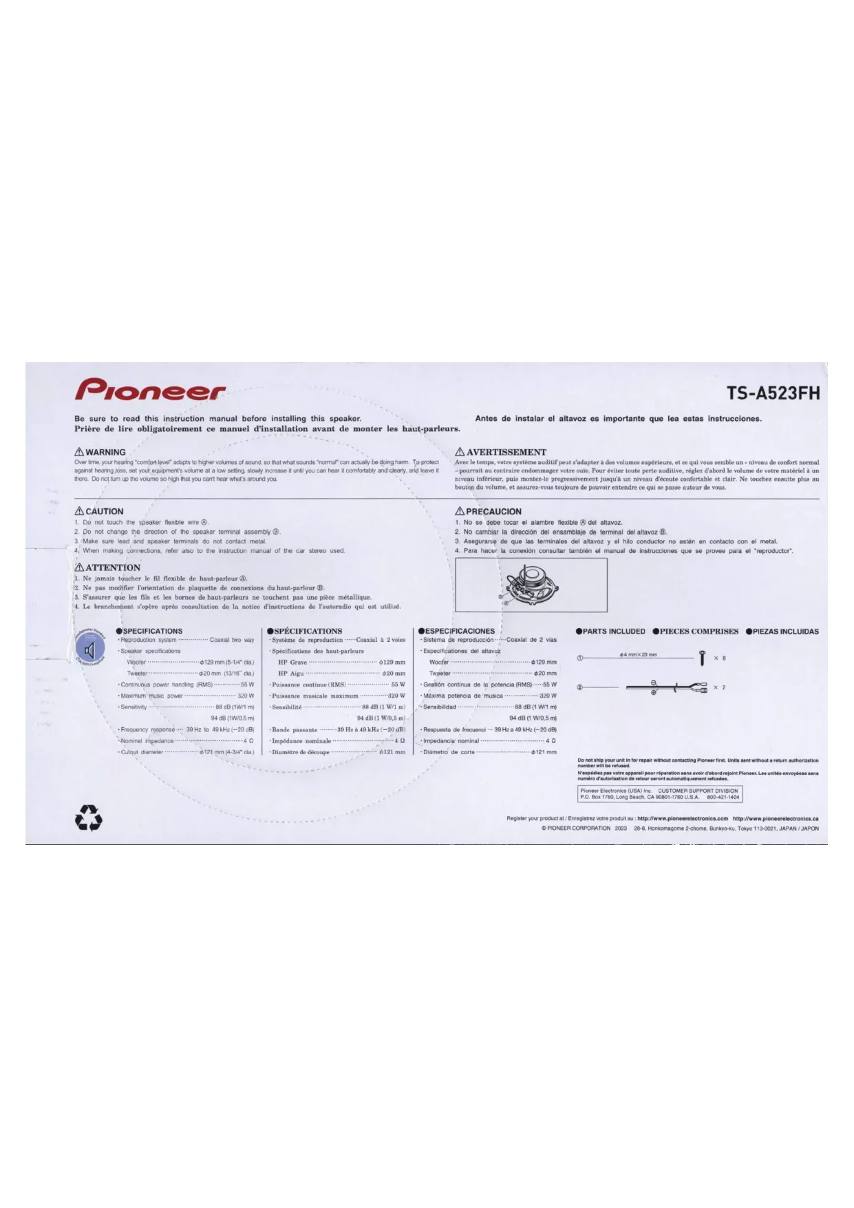 Retrouvez gratuitement la notice de l'appareil TS-A523FH PIONEER au format PDF.