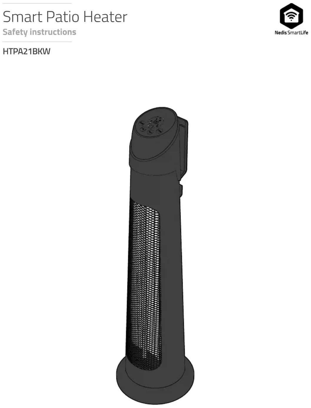 Consignes de sécurité Chaue-terrasse intelligent HTPA21BKW Pour plus d'informations, consultez le manuel détaillé en ligne : ned.is/htpa21bkw À propos de ce document Ce document constitue le manuel de l'utilisateur. Il contient toutes les informations nécessaires à une utilisation correcte, ecace et sûre du produit. Assurez-vous d'avoir entièrement lu et compris les instructions de ce document avant d'installer ou d'utiliser le produit. Conservez l'emballage et le présent document pour référence ultérieure. Symboles utilisés AVERTIS- SEMENT! Terme de signalement utilisé pour indiquer une situation potentiellement dangereuse qui, si elle n’est pas évitée, pourrait entraîner la mort ou des blessures graves. ATTENTI- ON! Terme de signalement utilisé pour indiquer une situation potentiellement dangereuse qui, si elle n’est pas évitée, pourrait entraîner des blessures légères ou modérées. REMARQUE Terme de signalement utilisé pour désigner des pratiques non liées à des blessures physiques. Utilisation prévue Ce produit est conçu comme un chaue-terrasse avec 2 réglages de température pour contrôler la température ambiante. Le produit est équipé d’un mode oscillation. Le produit tourne lentement d’un côté à l’autre, couvrant une zone d’environ 12 m