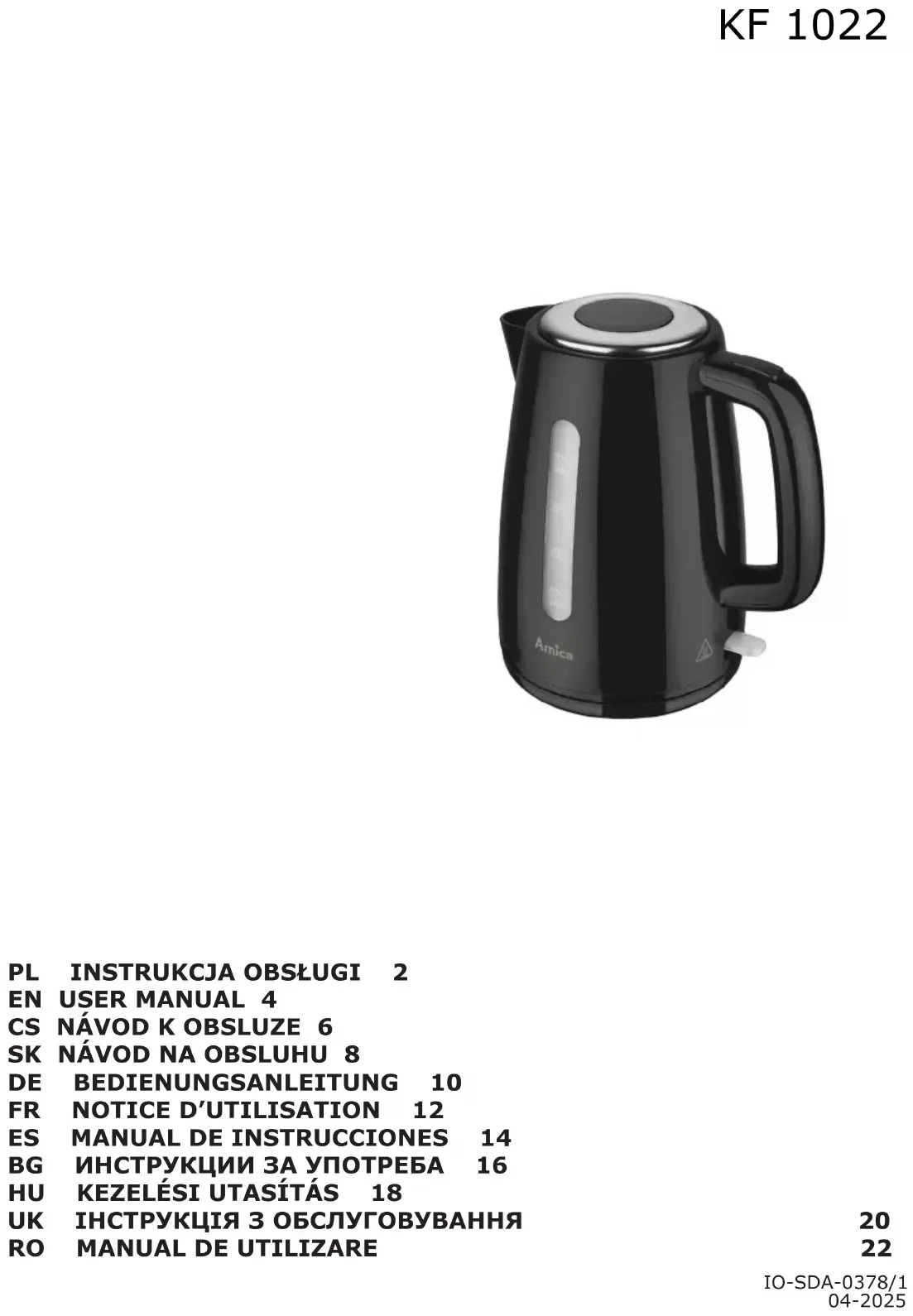 KF 1022 - Bouilloire AMICA - Notice d'utilisation et mode d'emploi gratuit