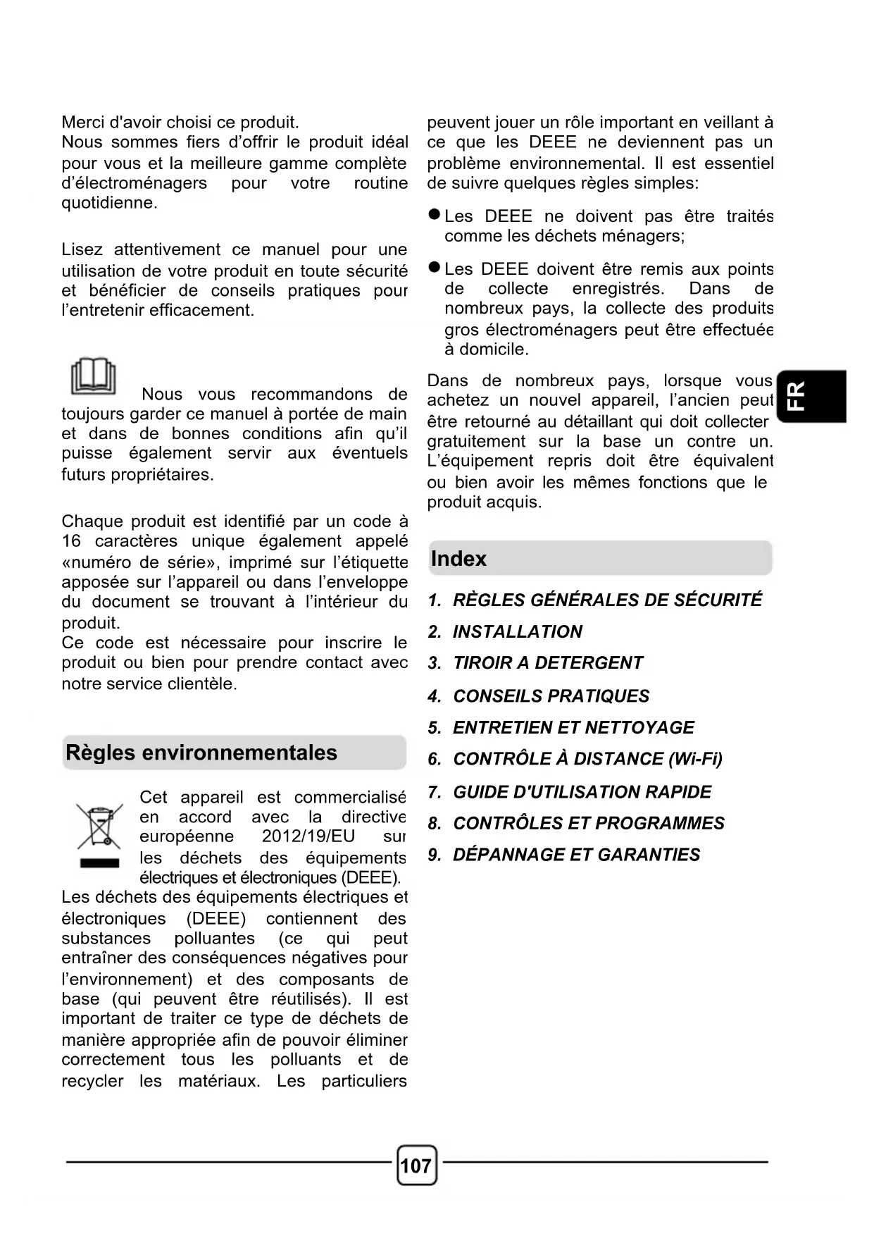 Les DEEE doivent être remis aux points de collecte enregistrés. Dans de nombreux pays, la collecte des produits gros électroménagers peut être effectuée à domicile.