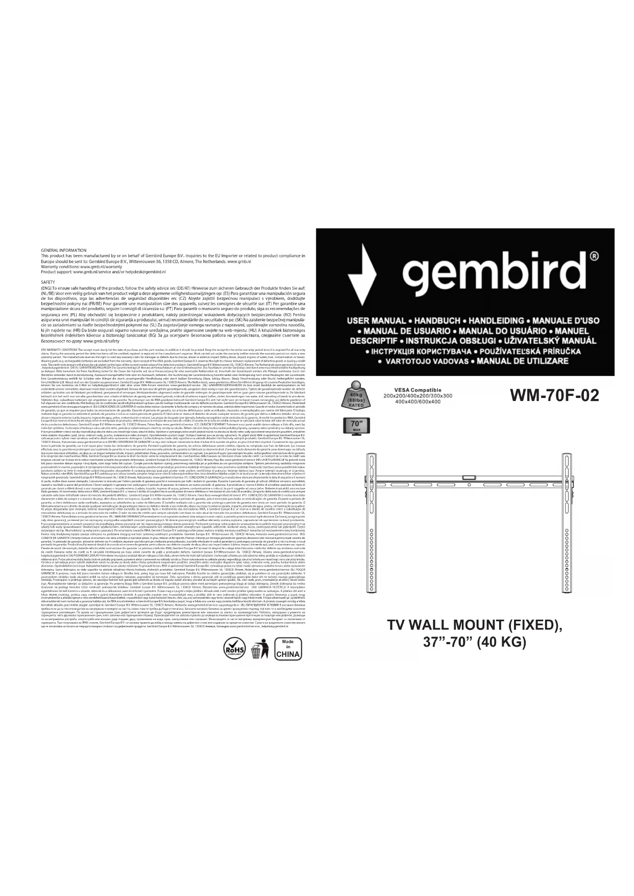 WM-70F-02 - Support mural Gembird - Notice d'utilisation et mode d'emploi gratuit