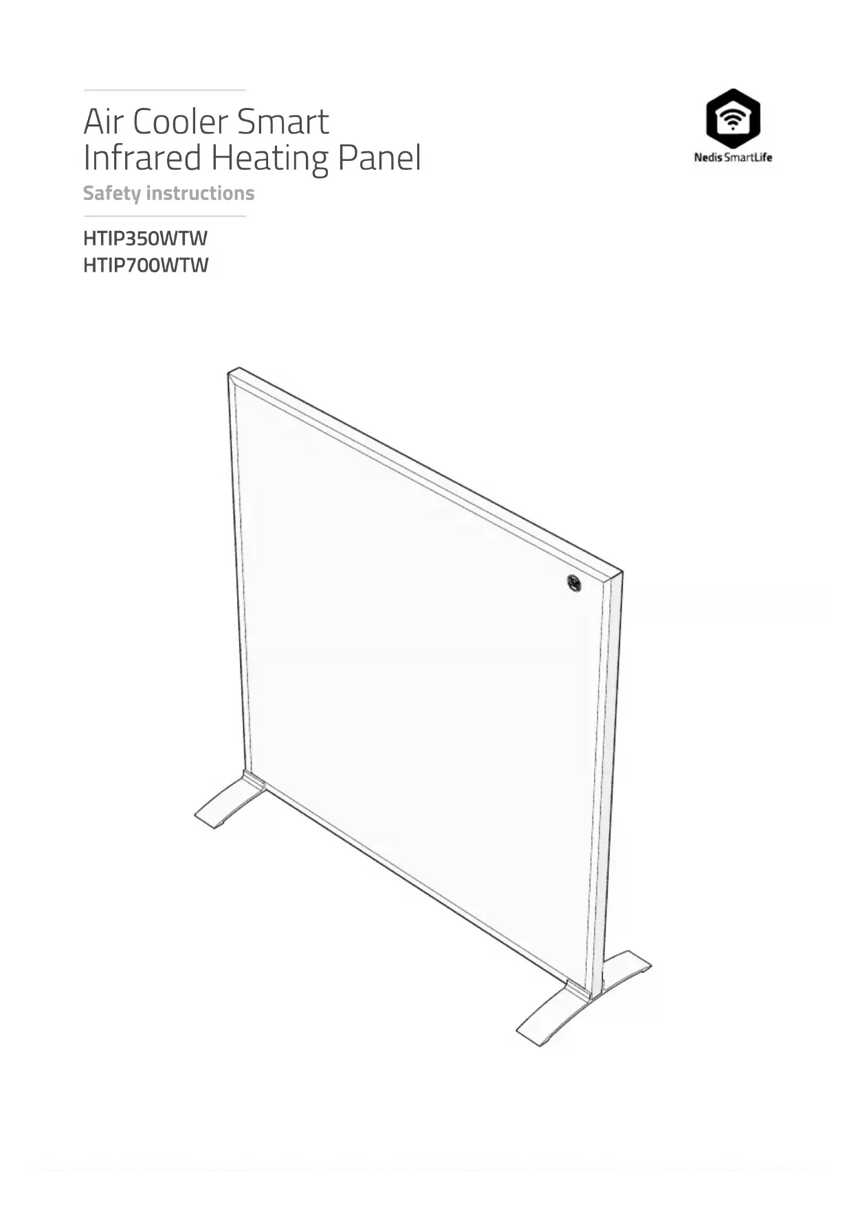 Consignes de sécurité Panneau chauant infrarouge intelligent HTIP350WTW HTIP700WTWPour plus d'informations, consultez le manuel détaillé en ligne : ned.is/htip350wtw | ned.is/htip700wtwÀ propos de ce documentCe document constitue le manuel de l'utilisateur. Il contient toutes les informations nécessaires à une utilisation correcte, ecace et sûre du produit.Assurez-vous d'avoir entièrement lu et compris les instructions de ce document avant d'installer ou d'utiliser le produit. Conservez l'emballage et le présent document pour référence ultérieure.Symboles utilisés 6 AVERTIS- SEMENT! Terme de signalement utilisé pour indiquer une situation potentiellement dangereuse qui, si elle n’est pas évitée, pourrait entraîner la mort ou des blessures graves. 1 ATTEN- TION! Terme de signalement utilisé pour indiquer une situation potentiellement dangereuse qui, si elle n’est pas évitée, pourrait entraîner des blessures légères ou modérées. REMARQUE Terme de signalement utilisé pour désigner des pratiques non liées à des blessures physiques.Utilisation prévueCe produit est conçu comme un panneau chauant infrarouge qui peut être monté au mur ou posé au sol.Ce produit peut être contrôlé via l’application Nedis SmartLife, les boutons du produit ou la télécommande incluse.Ce produit est prévu pour un usage intérieur uniquement.Utiliser le produit uniquement comme décrit dans le présent manuel de l’utilisateur.Toute modication du produit peut avoir des conséquences sur la sécurité, la garantie et le bon fonctionnement.Ce produit est destiné à être utilisé dans des applications domestiques et similaires telles que des cuisines.Ce produit peut être utilisé par des enfants âgés de 8 ans et plus ainsi que des personnes ayant des capacités physiques, sensorielles ou mentales réduites ou manquant d’expérience et de connaissances s’ils sont supervisés ou ont reçu des instructions sur l’utilisation du produit en toute sécurité et comprennent les dangers impliqués. Les enfants ne doivent pas jouer avec le produit. Le nettoyage et la maintenance ne doivent pas être eectués par des enfants sans surveillance.Ce produit n’est pas destiné à être utilisé par des personnes sourant de coups de soleil, des personnes sous soins médicaux pour des maladies impliquant une photosensibilité et/ou des personnes prenant des médicaments photosensibilisants.Ce produit ne peut être utilisé que dans des locaux bien isolés ou de manière occasionnelle.Ce produit n’est pas destiné à un usage professionnel.Consignes de sécuritéPour éviter toute surchaue, ne couvrez pas le produit.Nedis® SmartLife | Safety instructions 7