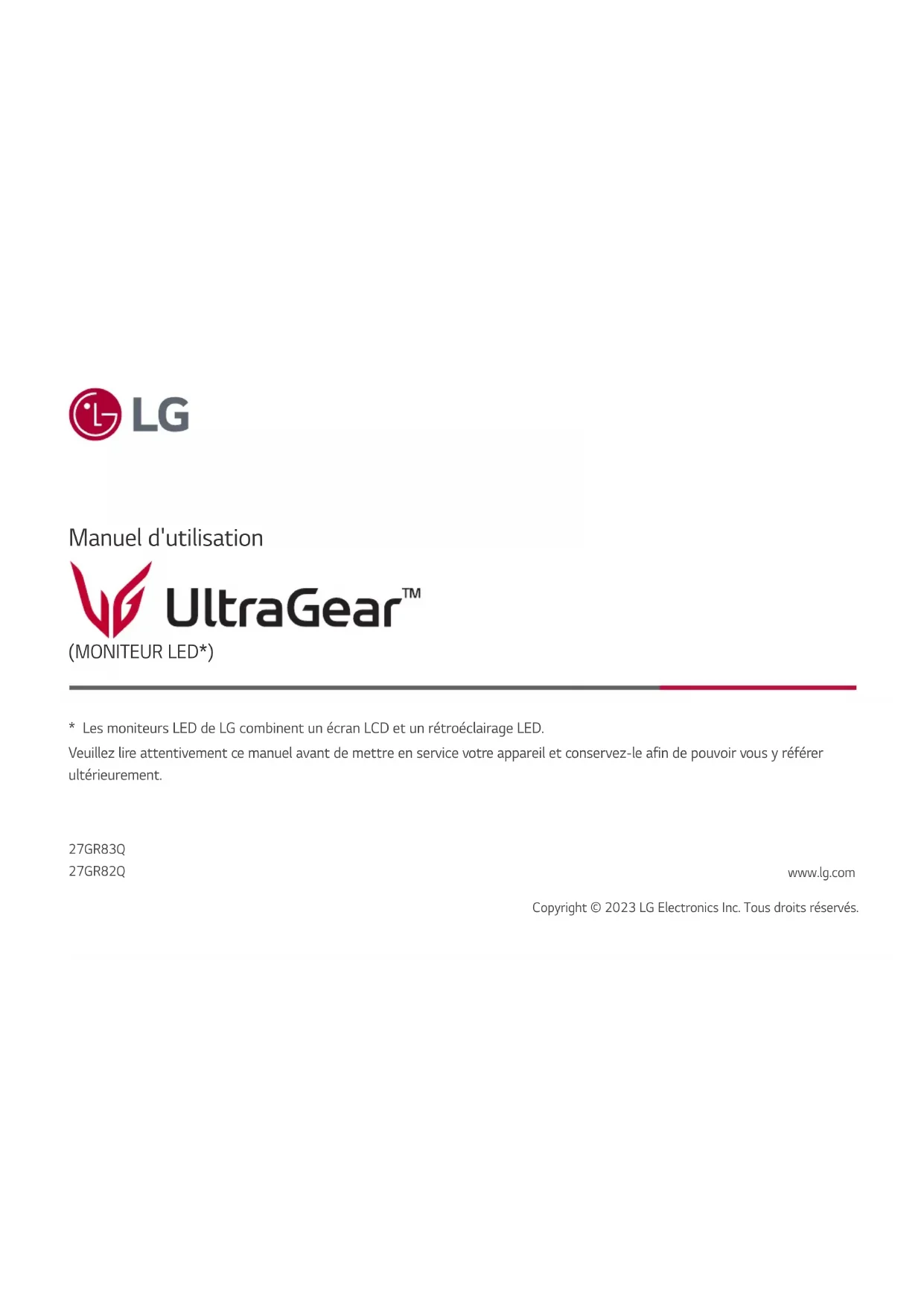 UltraGear 27GR83Q - Moniteur LG - Notice d'utilisation et mode d'emploi gratuit