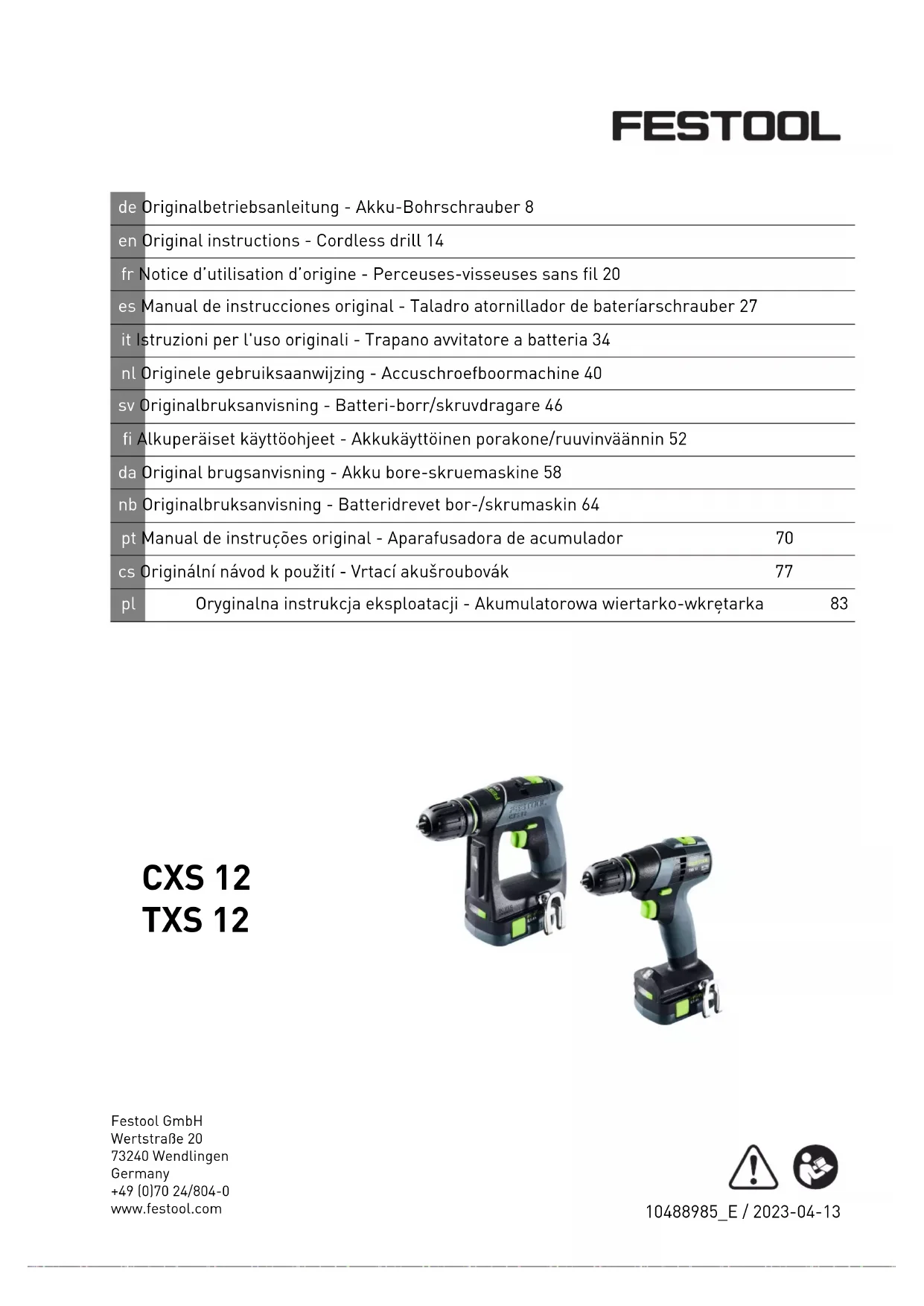 TXS 12 - Perceuse FESTOOL - Notice d'utilisation et mode d'emploi gratuit