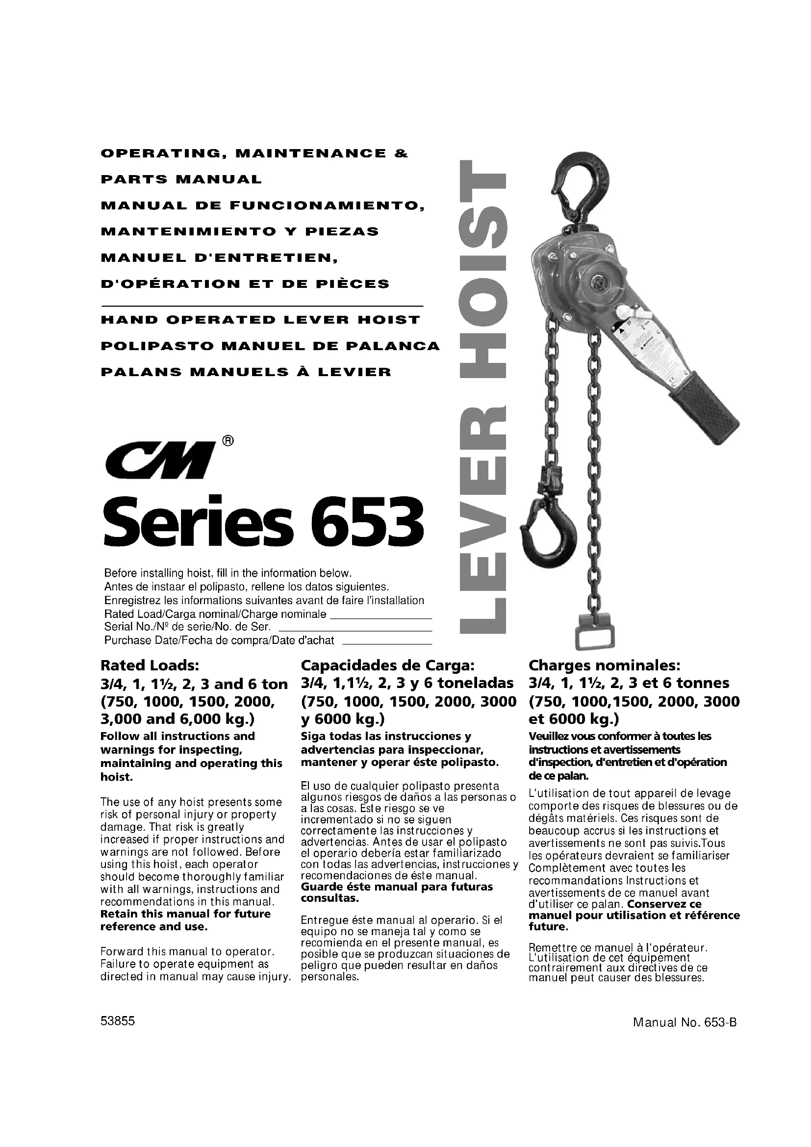 Notes12-Fr Figure 15 - Palan manuel à levier Series 653 S’il vous plaît fournir l’information suivant: - Núméro de Modèle - Núméro de Série (s’il y en a un) - Description de la pièce et son numéro sur la liste