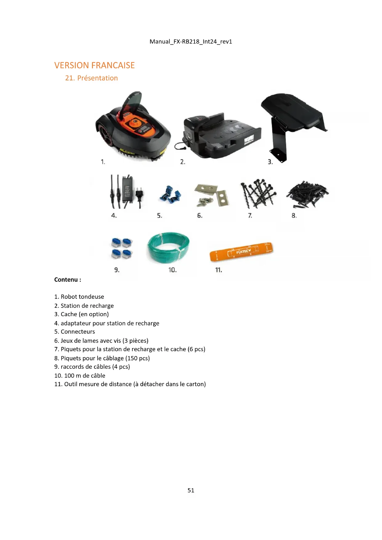 11. Outil mesure de distance (à détacher dans le carton)Manual_FX-RB218_Int24_rev1