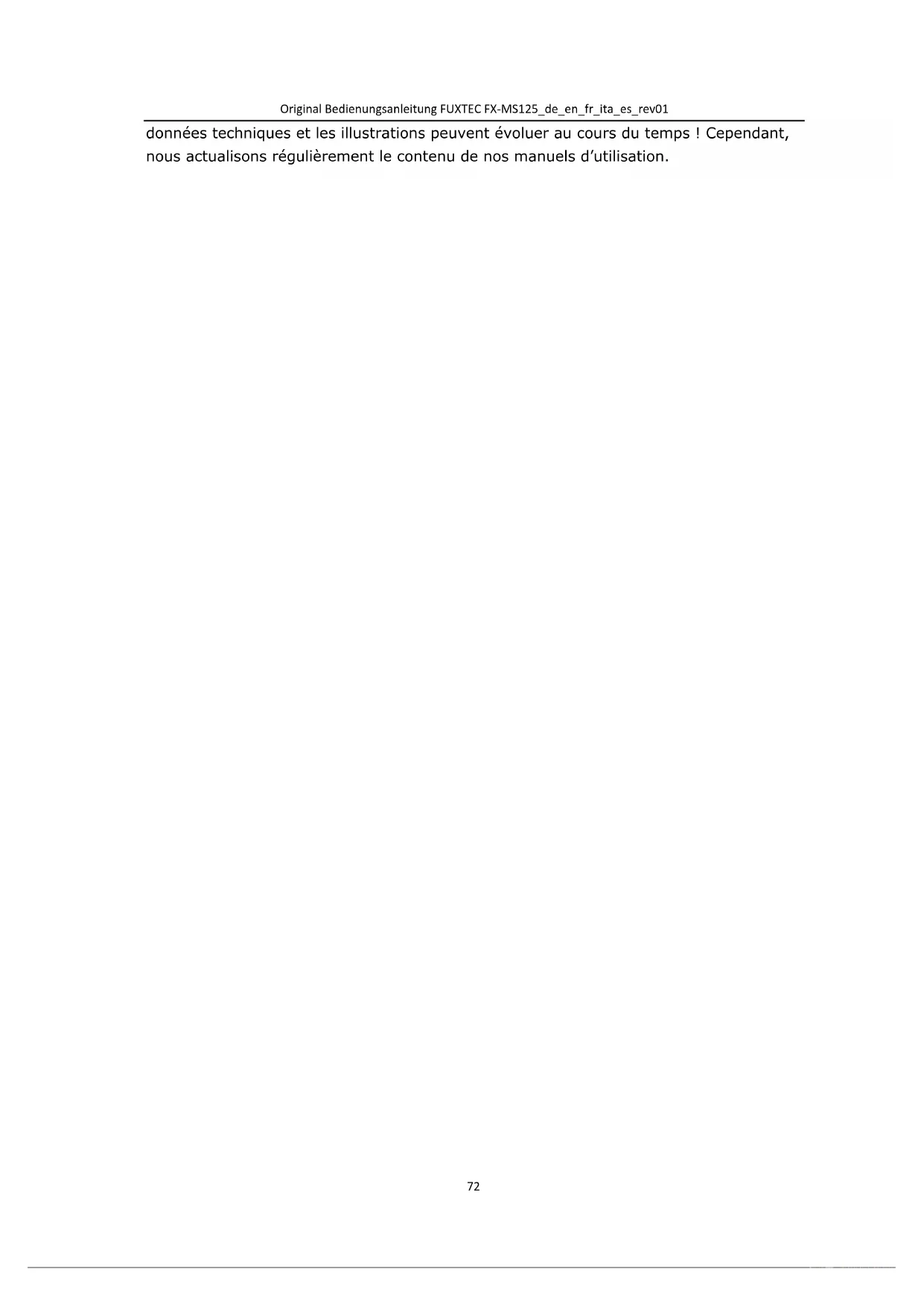 données techniques et les illustrations peuvent évoluer au cours du temps ! Cependant, nous actualisons régulièrement le contenu de nos manuels d’utilisation.Original Bedienungsanleitung FUXTEC FX-MS125_de_en_fr_ita_es_rev01