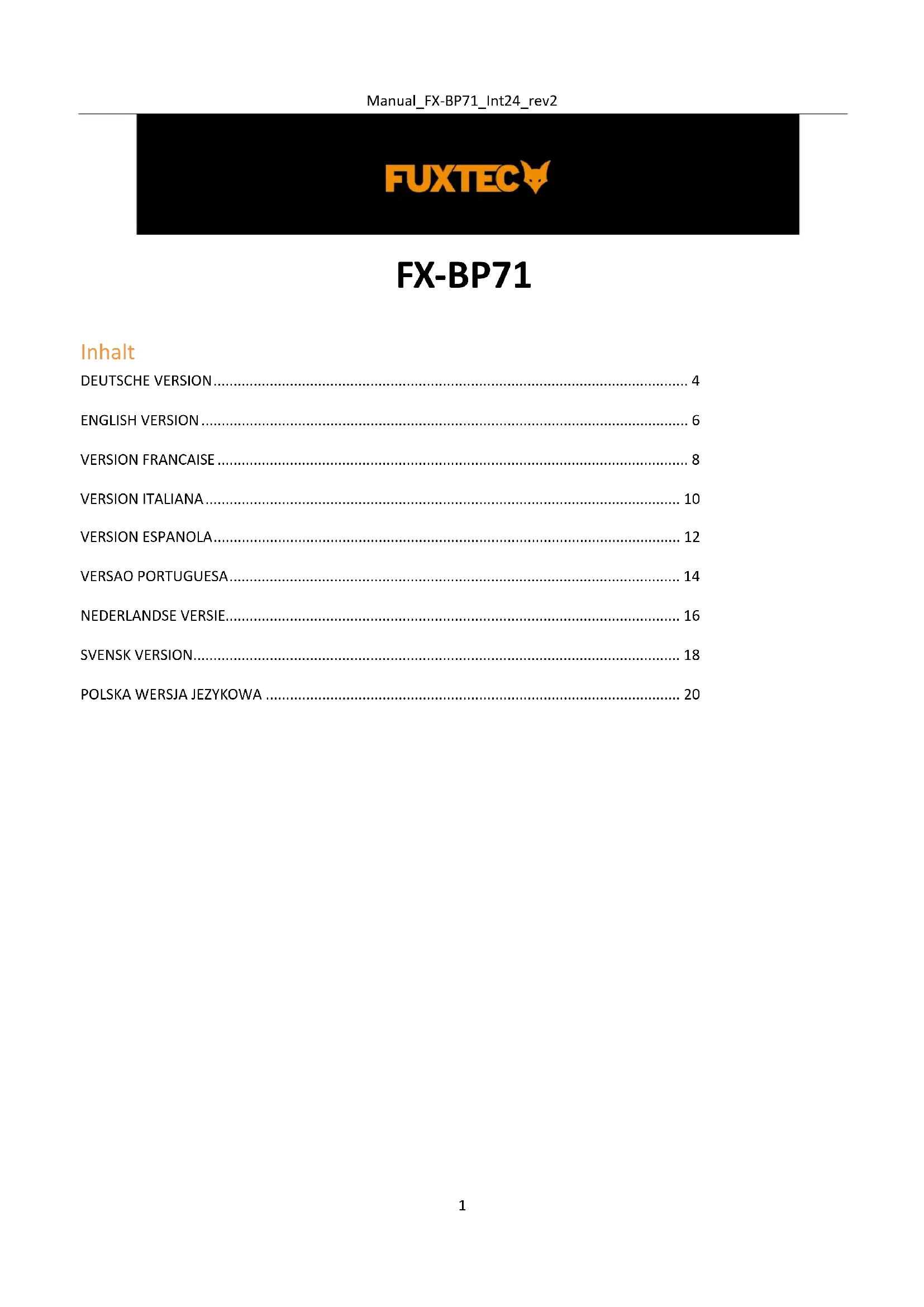 Retrouvez gratuitement la notice de l'appareil FX-BP71 Fuxtec au format PDF.