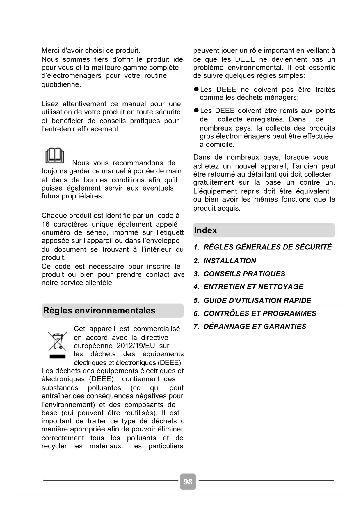 Merci d'avoir choisi ce produit. Nous sommes fiers d’offrir le produit idéal pour vous et la meilleure gamme complète d’électroménagers pour votre routine quotidienne. Lisez attentivement ce manuel pour une utilisation de votre produit en toute sécurité et bénéficier de conseils pratiques pour l’entretenir efficacement. Nous vous recommandons de toujours garder ce manuel à portée de main et dans de bonnes conditions afin qu’il puisse également servir aux éventuels futurs propriétaires. Chaque produit est identifié par un code à 16 caractères unique également appelé «numéro de série», imprimé sur l’étiquette apposée sur l’appareil ou dans l’enveloppe du document se trouvant à l’intérieur du produit. Ce code est nécessaire pour inscrire le produit ou bien pour prendre contact avec notre service clientèle.