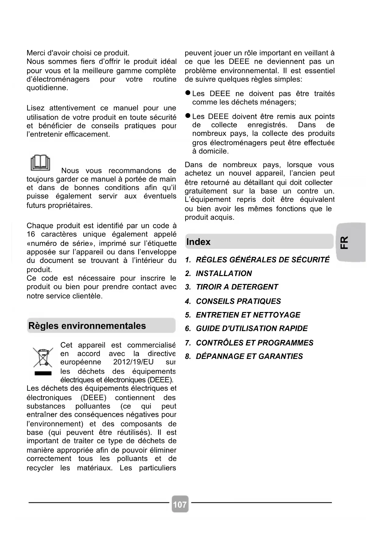 Les DEEE doivent être remis aux points de collecte enregistrés. Dans de nombreux pays, la collecte des produits gros électroménagers peut être effectuée à domicile.
