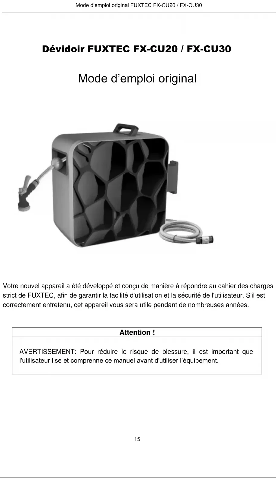 FX-CU30 - Tuyau d'arrosage Fuxtec - Notice d'utilisation et mode d'emploi gratuit
